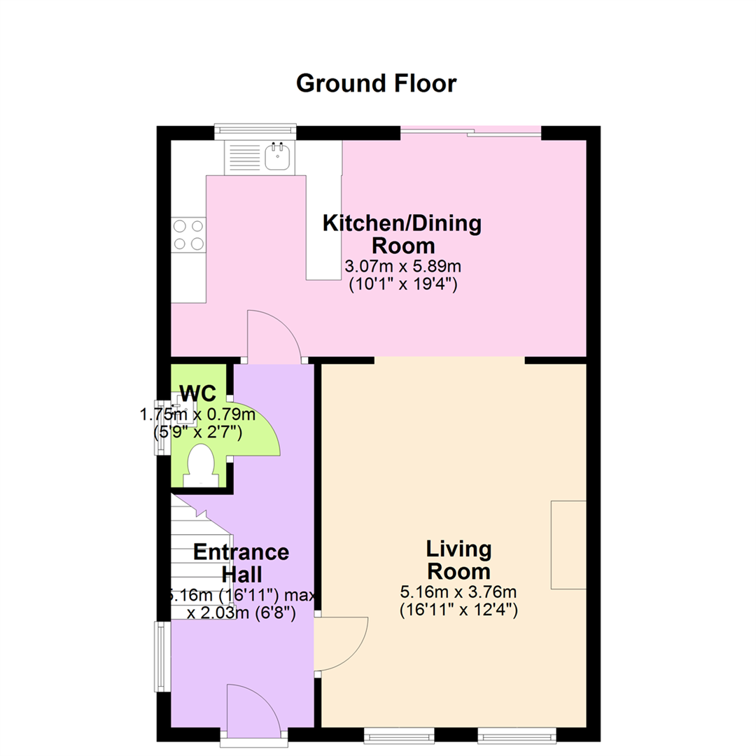 Entrance Hall 16'11" X 6'8" (5.16m X 2.03m)