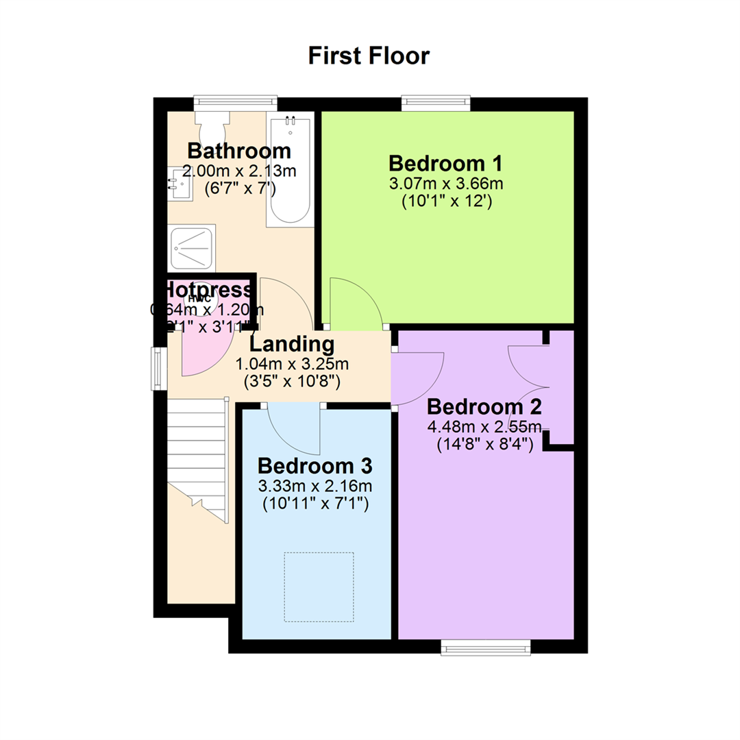 Landing 3'5" X 10'8" (1.04m X 3.25m)