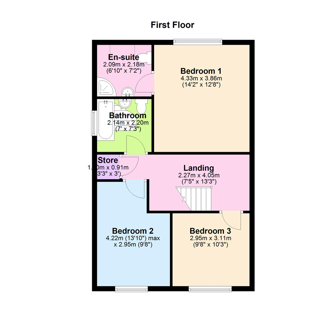 Bedroom 1 14'2" X 12'8" (4.33m X 3.86m)