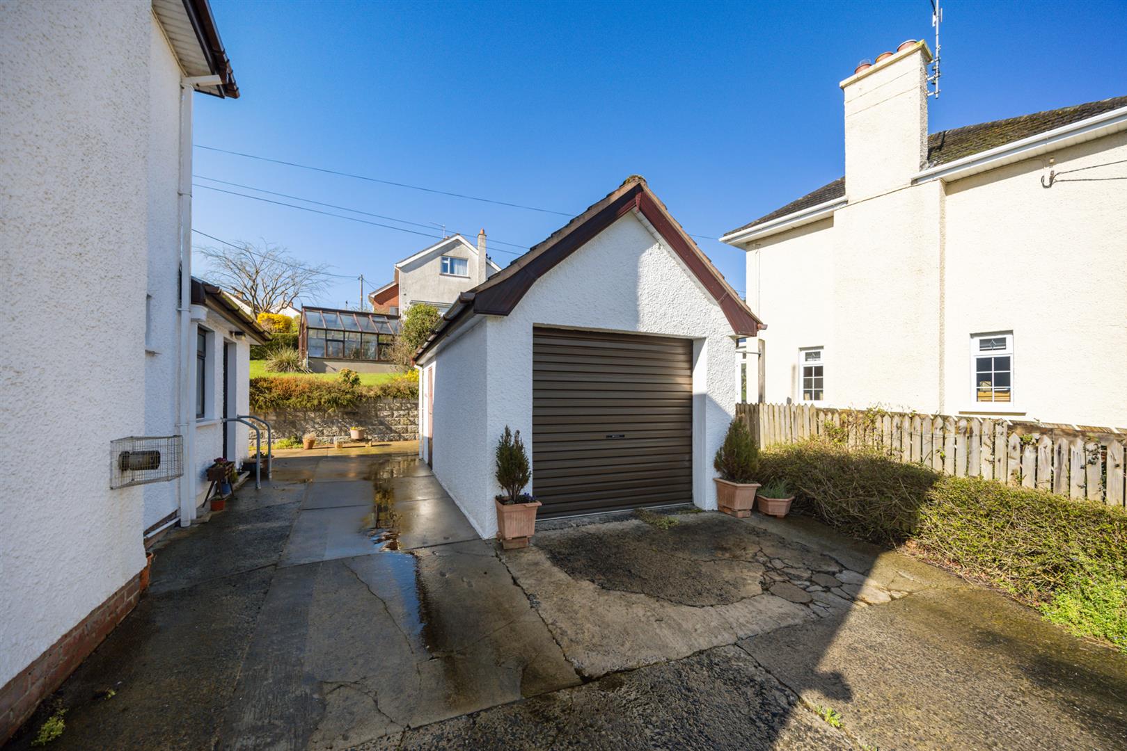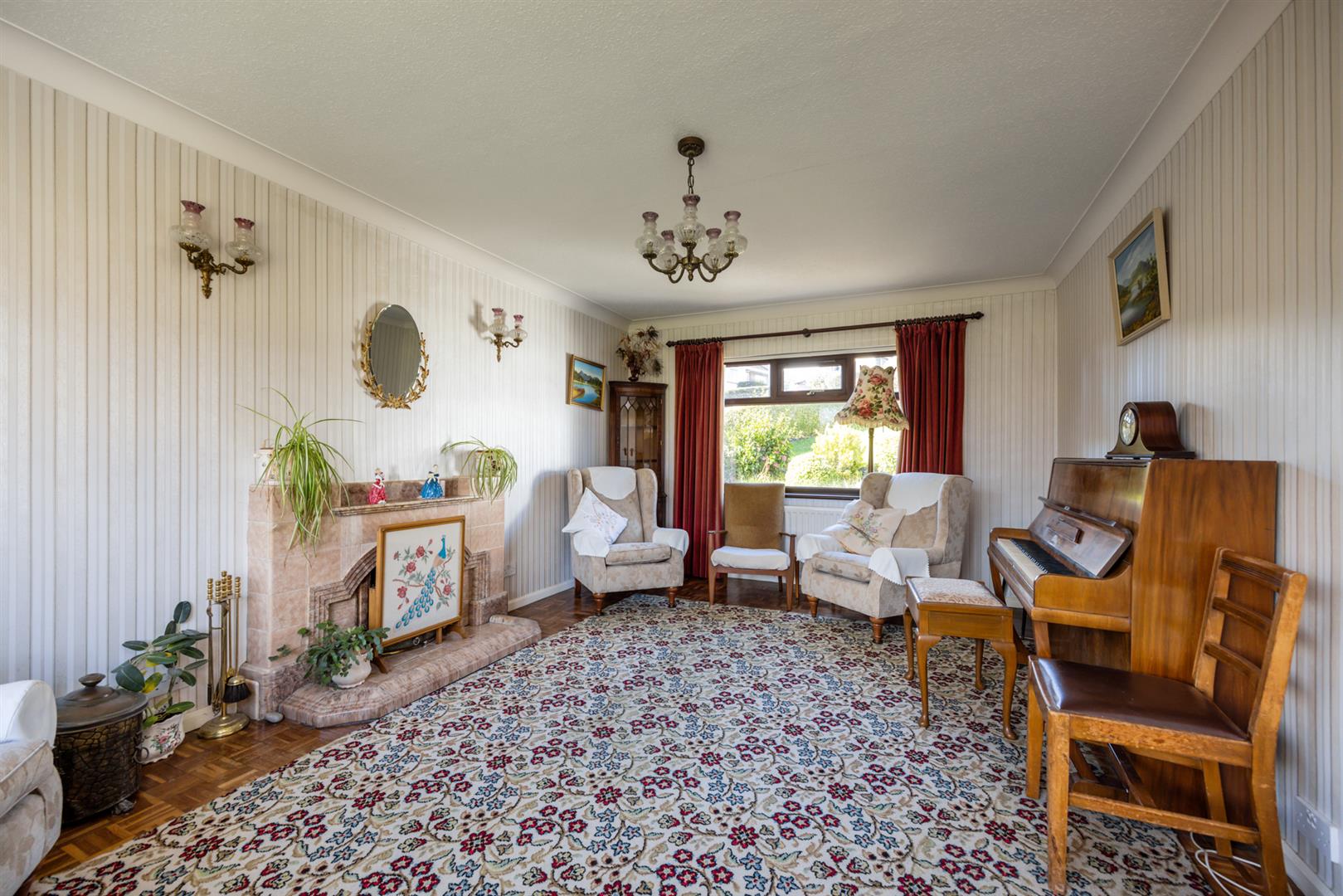 Externally, the home is surrounded by mature, well-maintained gardens laid in lawn to both the front and rear, enhanced by established trees and shrubs. A private driveway provides ample off-street parking and leads to a detached garage.