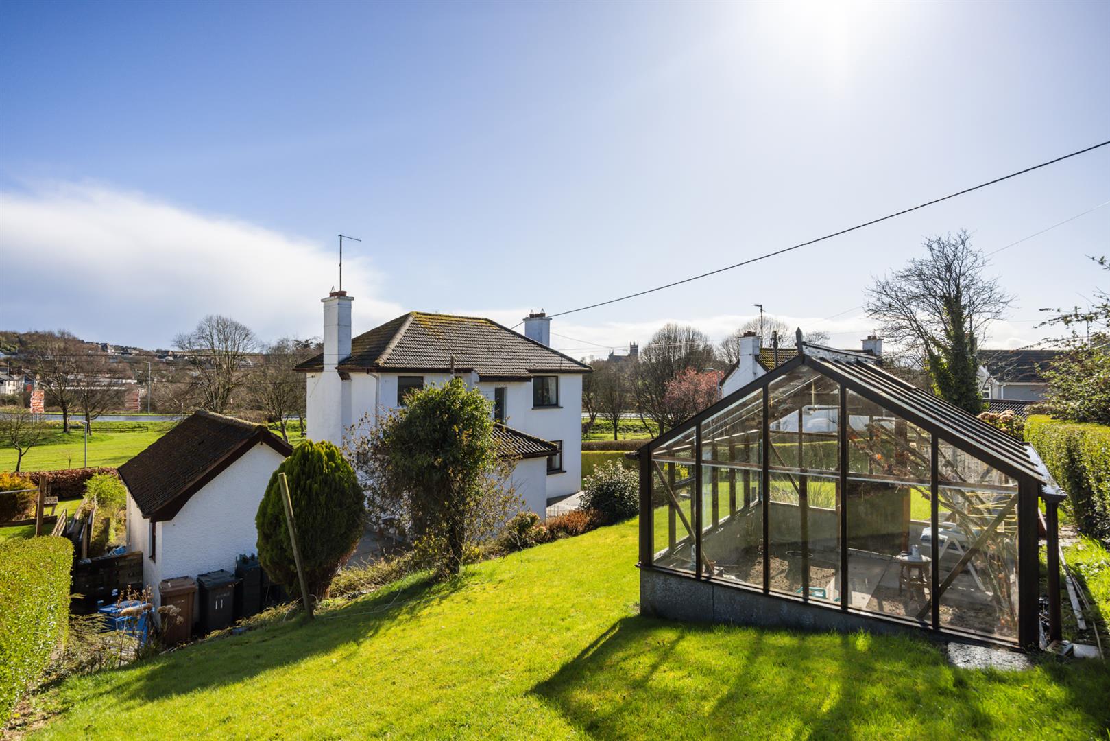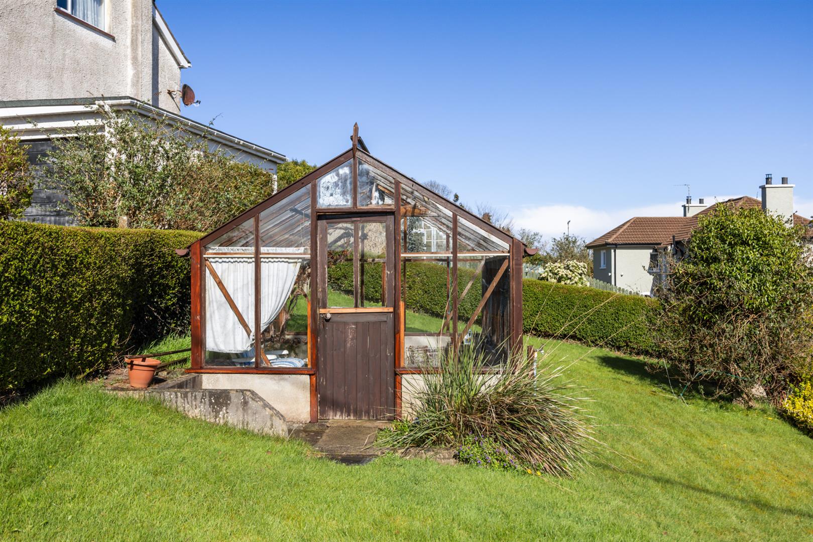Mature gardens with gardens in lawn to the front. Rear gardens in lawn with mature shrubs and trees with greenhouse. Driveway with ample parking.