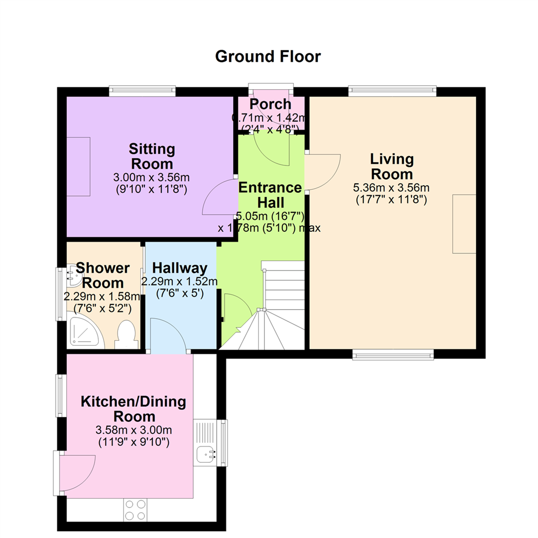 This well-proportioned home offers flexible and spacious accommodation across two floors. The ground floor comprises a bright living room, separate sitting room, a generous kitchen with dining area, and a convenient shower room. Upstairs, the property boasts four well-sized bedrooms, complemented by a family bathroom and a separate WC.