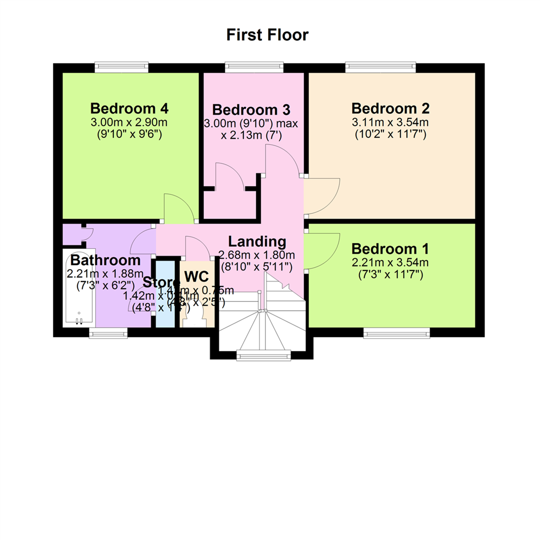 Bedroom 4 9'10" X 9'6" (3.00m X 2.90m)