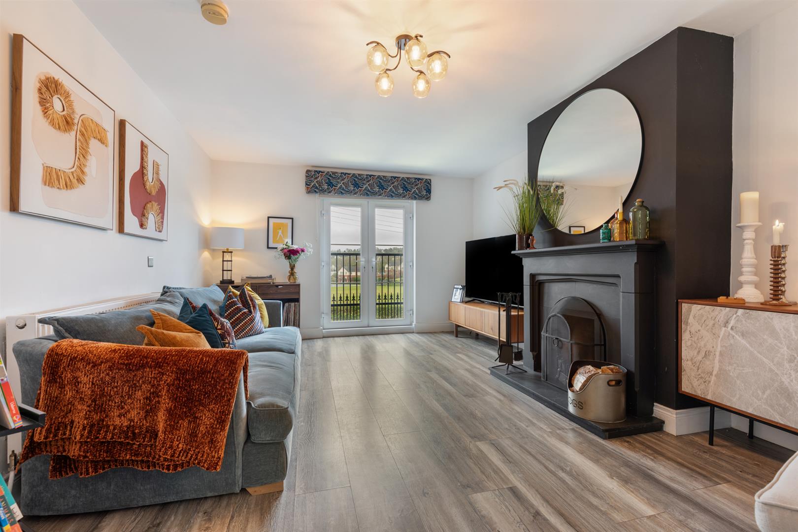 Wooden flooring. Feature fireplace. Juliet balcony with Views over Downpatrick Cricket Club.