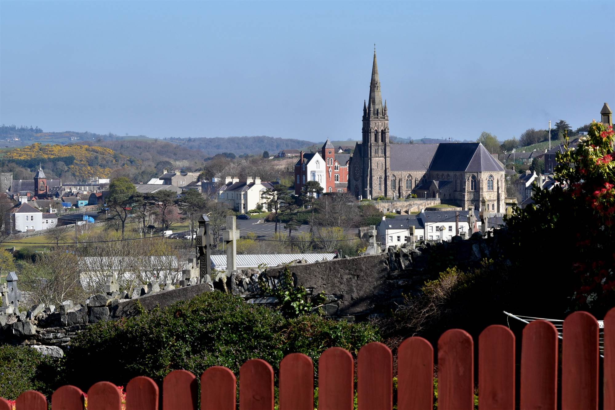 polished granite fireplace, arched alcove, cornicing, laminate flooring, hotpress, radiator