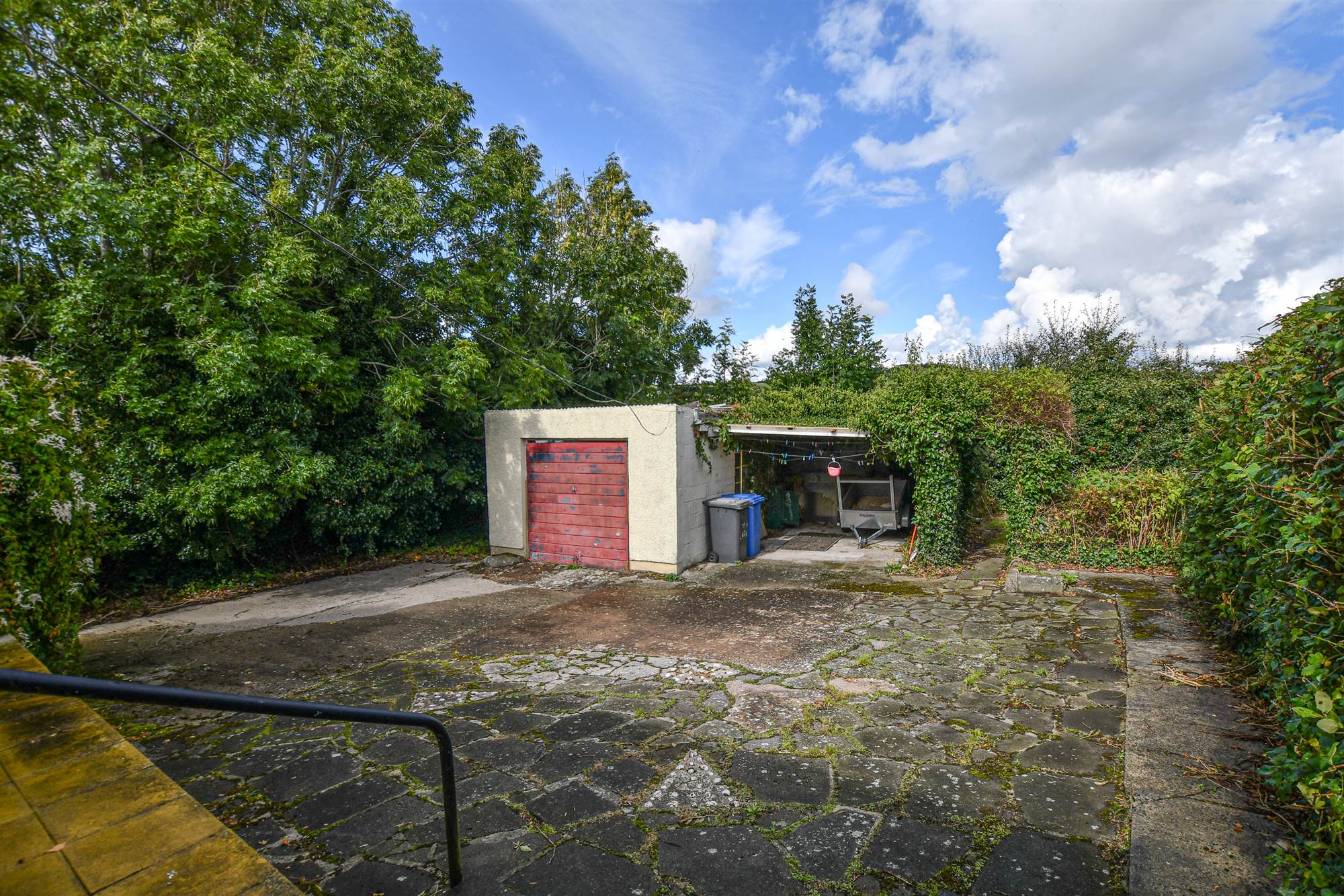 Mature and spacious gardens with a rage of shrubs, trees and mature hedging