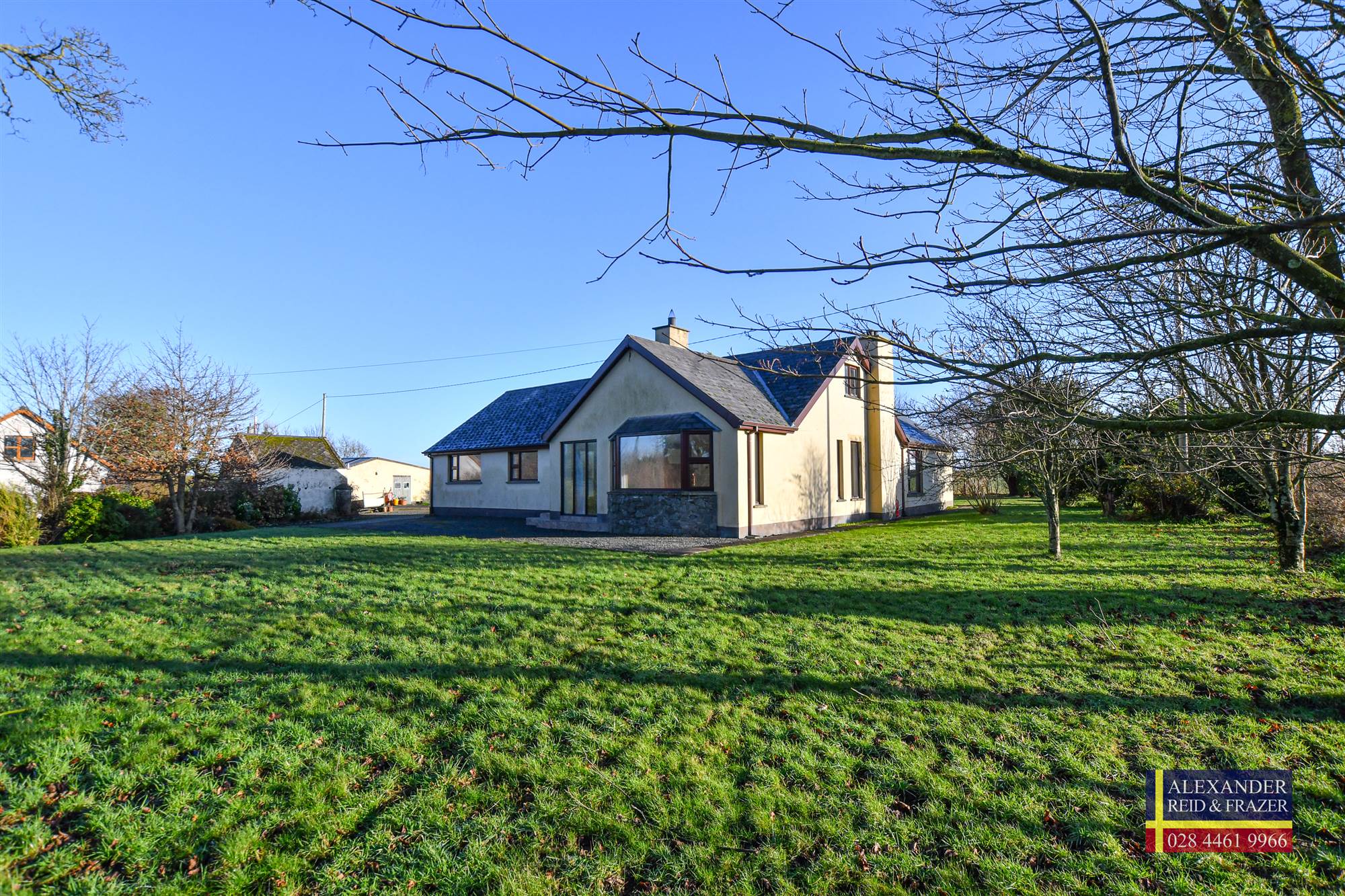Welcome to 91 Crew Road, a charming and generously proportioned detached bungalow that has been lovingly maintained for many years. This delightful home offers an abundance of space and comfort, making it an ideal choice for family living or those seeking a peaceful countryside retreat.