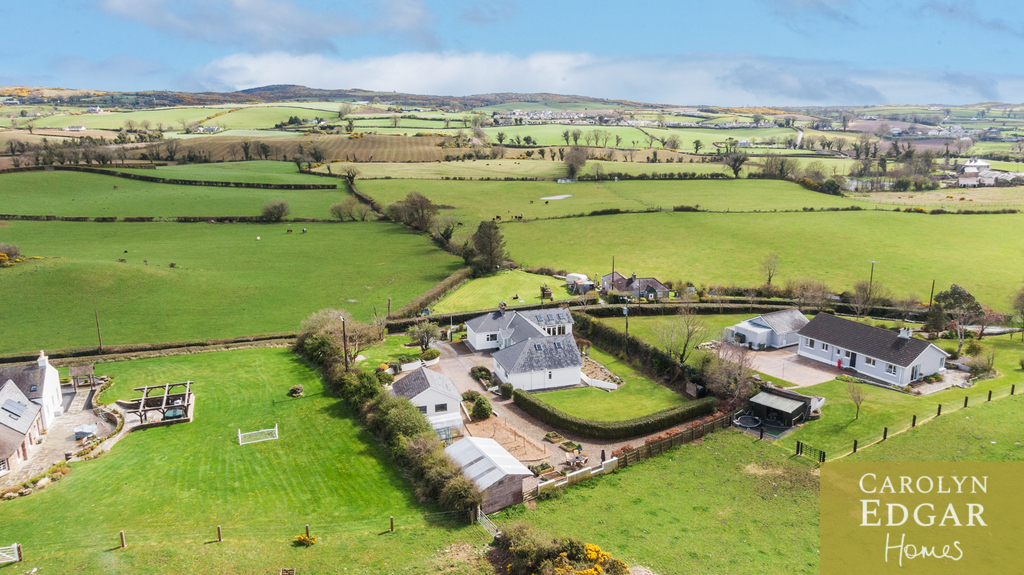 Nestled down a quiet country road enclosed by a white picket fence this delightful cottage dating back to the 1900s is set in an idyllic and picturesque setting of circa 0.6 acres on a slightly elevated site with spectacular uninterrupted views of the surrounding countryside and presents a wonderful opportunity to purchase such a charming property and the lifestyle that comes with it. Perfectly presented throughout this enchanting cottage has been extended and revamped over the years, with many original period features mixing both old world with new and is overflowing with character and charm. Internally the property comprises of entrance porch and hallway, spacious lounge with stunning views and inglenook fireplace with wood burning stove, fabulous open plan luxury fitted country style kitchen with centre island overlooking the stunning countryside and gardens to the front with a beautiful selection of meadows flowers, cottage garden and fruit trees, leads onto the dining and family area with exposed wood beams, vaulted ceiling, large wood burner and French doors out to the paved sun terrace and rear gardens. Off the extensive hallway are five beautifully presented double bedrooms, three with ensuite and family bathroom with free standing bath. Outside the property is set in wonderful wrap around cottage style gardens to the front and to the rear the gardens have extensive views over unspoilt open countryside, gravelled sun terrace and cultivated area with polytunnel to grow your own with everything you need to be self-sufficient from home grown vegetables to fruit trees. There are several outbuildings to include stable block with three converted stables, with power and water, and large double garage converted to gym. Located in an area of outstanding natural beauty with Strangford only five minutes' drive and the picturesque but busier town of Downpatrick only 15 minutes away there are an abundance of opportunities to enjoy the great outdoors, from sailing on the Strangford Lough, cycling, fishing, walking and bird watching .offering a unique opportunity for those looking for a change of pace and the lifestyle that comes with it.
