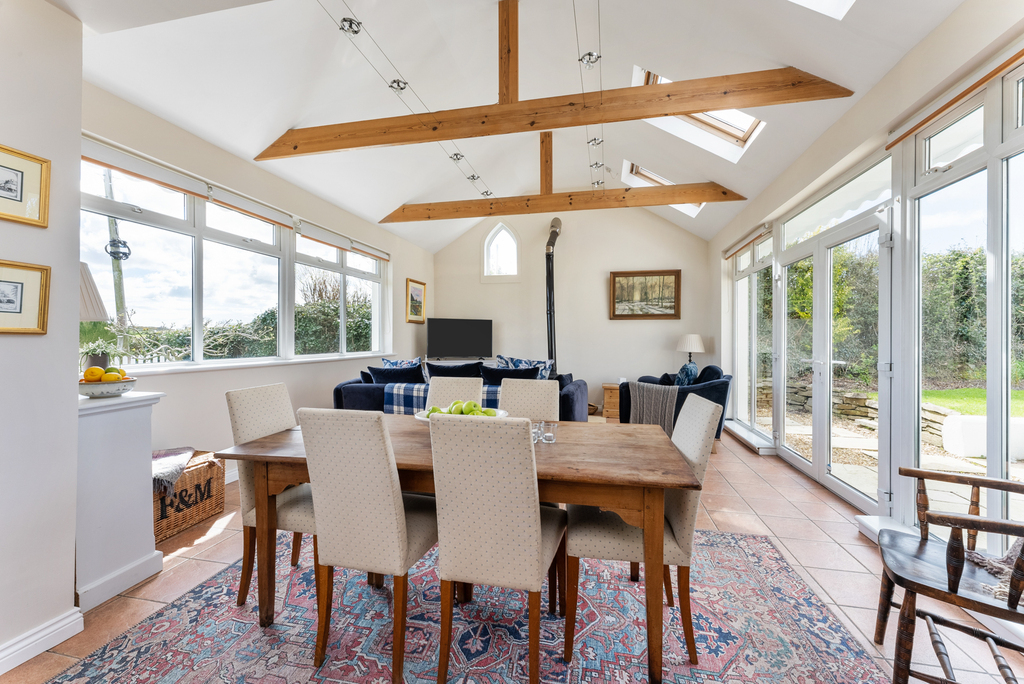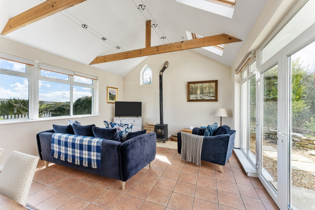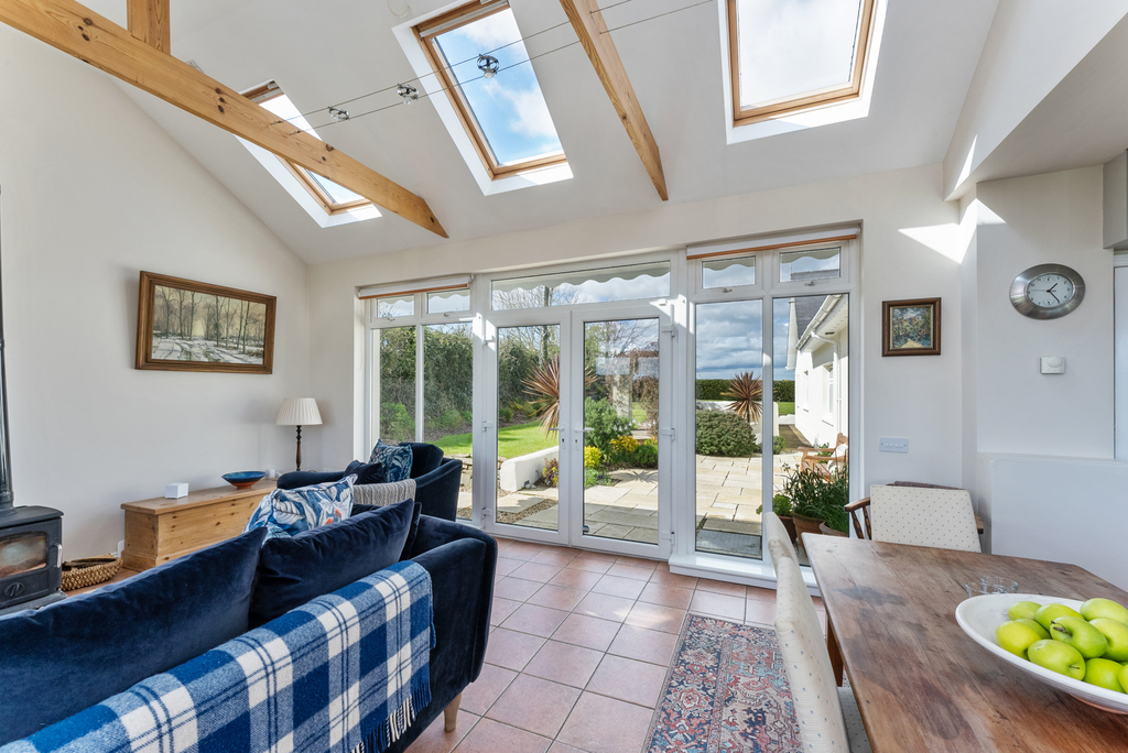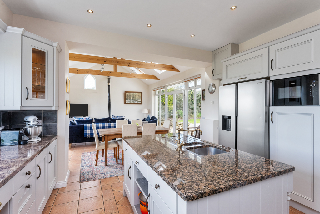 Extensive Open Plan Kitchen to Family Area with Vaulted Ceiling and Wood Burning Stove