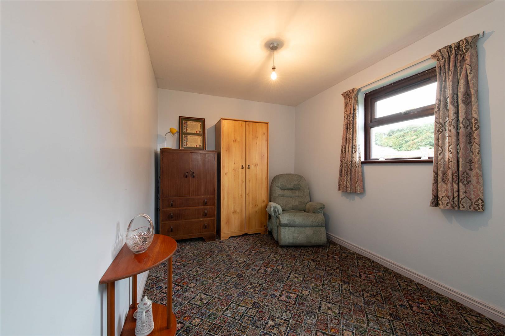 Approached by tarmac driveway, the property boasts ample off road parking, easily maintained front lawn and large, south facing private rear garden and small patio area.