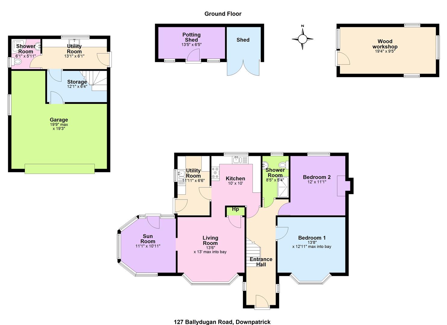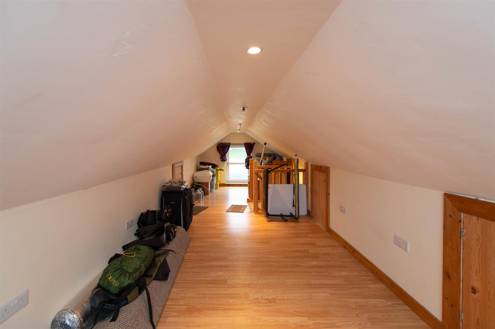 Offering a generous and versatile plot that includes multiple distinct outdoor areas, including detached garage boasting utility room, shower room and first floor attic room, sheds and wood workshop.