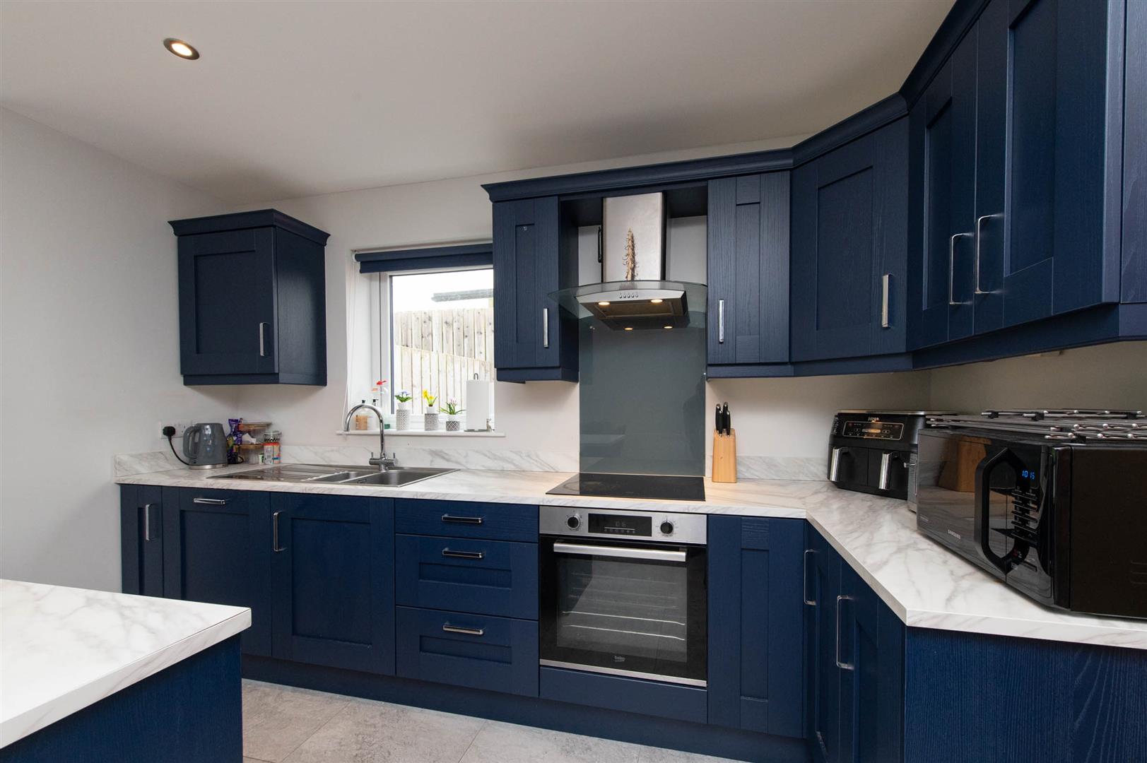 This beautifully presented home offers a perfect blend of comfort and style. With three bedrooms, including master ensuite, the heart of the home is undoubtedly the open plan kitchen, dining area and sun room, which boasts modern fittings and ample storage, making it a delightful space for cooking and entertaining. The double aspect sitting room includes a media wall and electric fire.