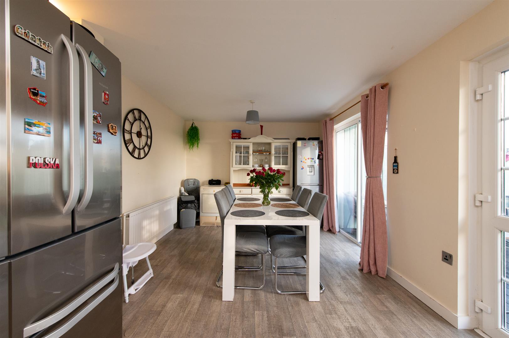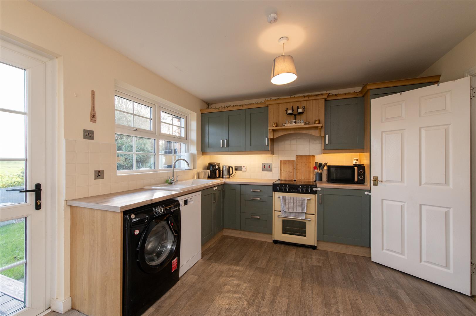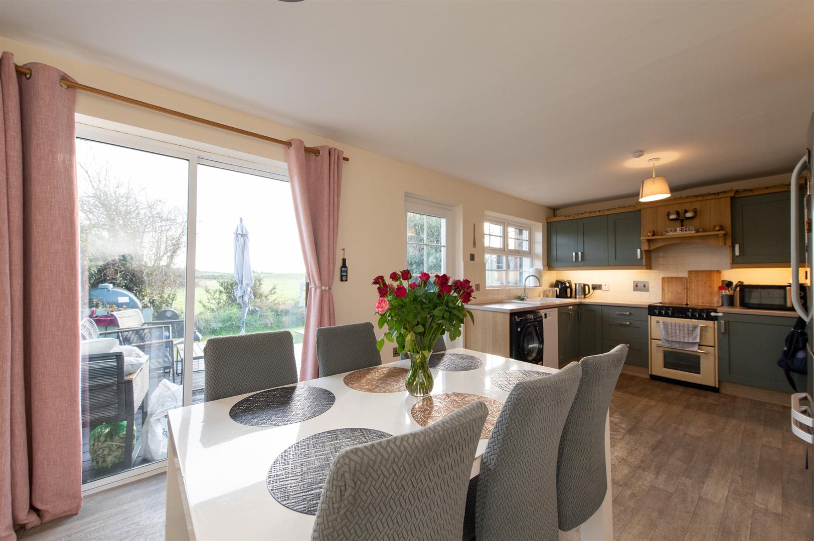 The ground floor comprises generous lounge with stove, open kitchen and dining room, while the first floor boasts three good sized bedrooms and the family bathroom.