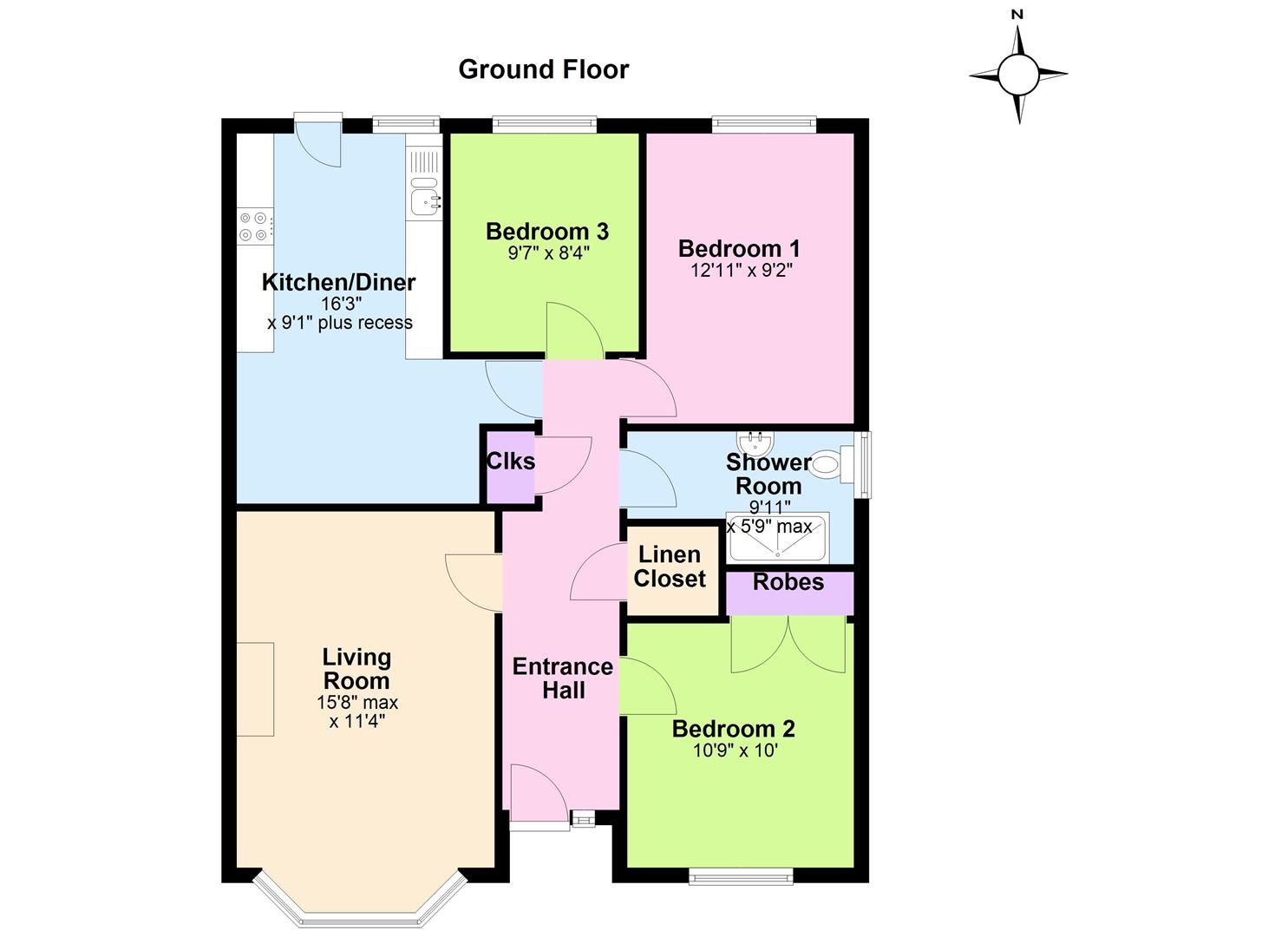 Comprising generous lounge with bay window, open plan kitchen diner, three bedrooms, one with built in robes and shower room.