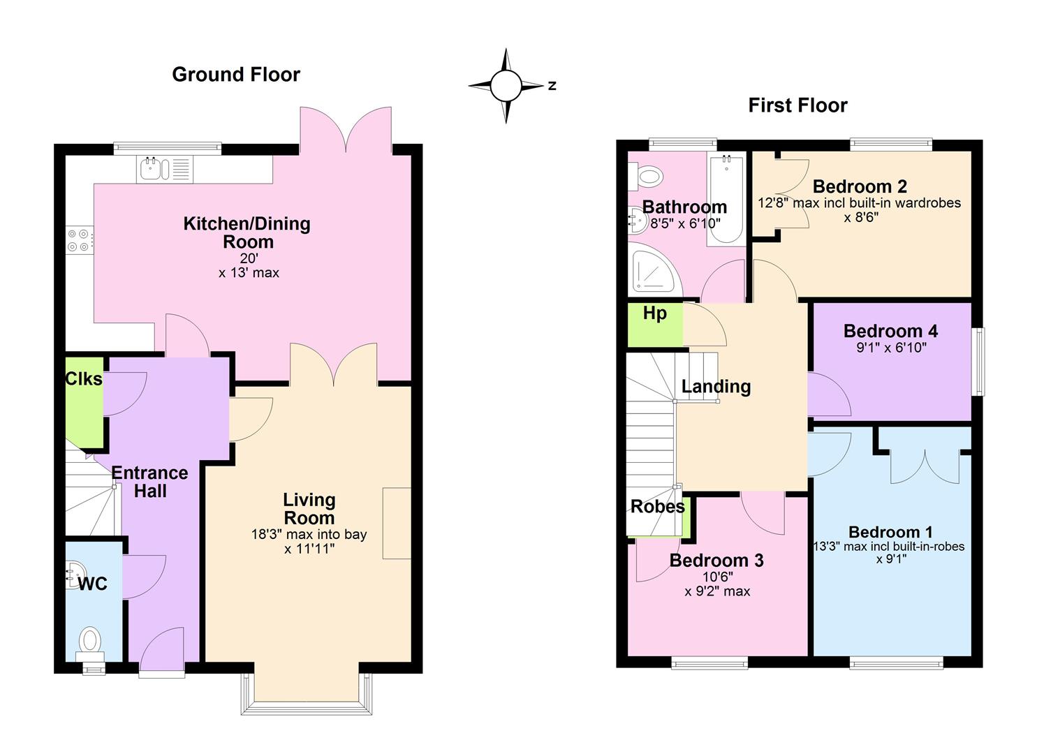 A tastefully presented family home offering spacious accommodation comprising living room with open fire, modern kitchen diner, ground floor WC, four bedrooms, three with built in robes and family bathroom including separate shower.