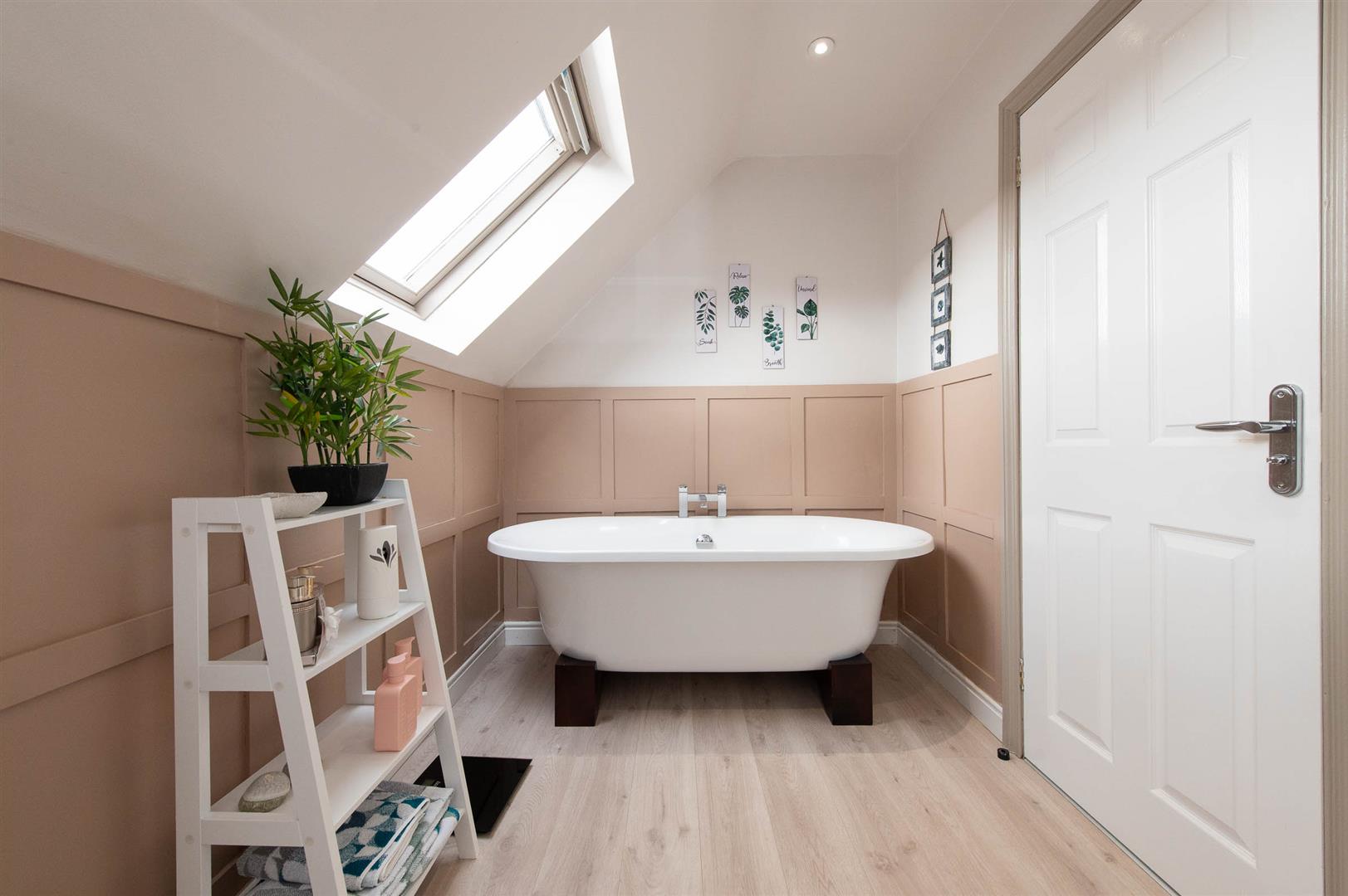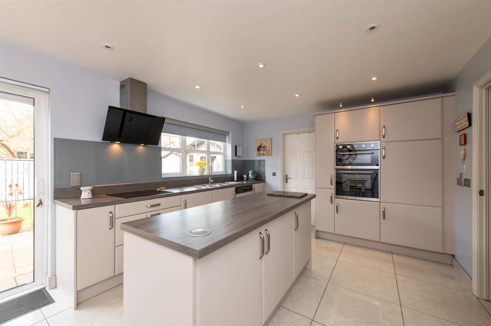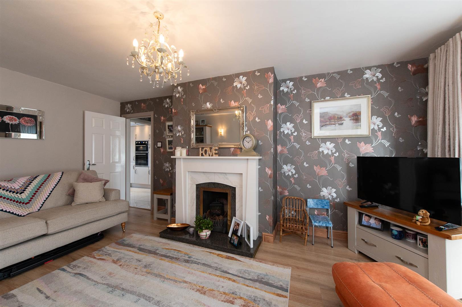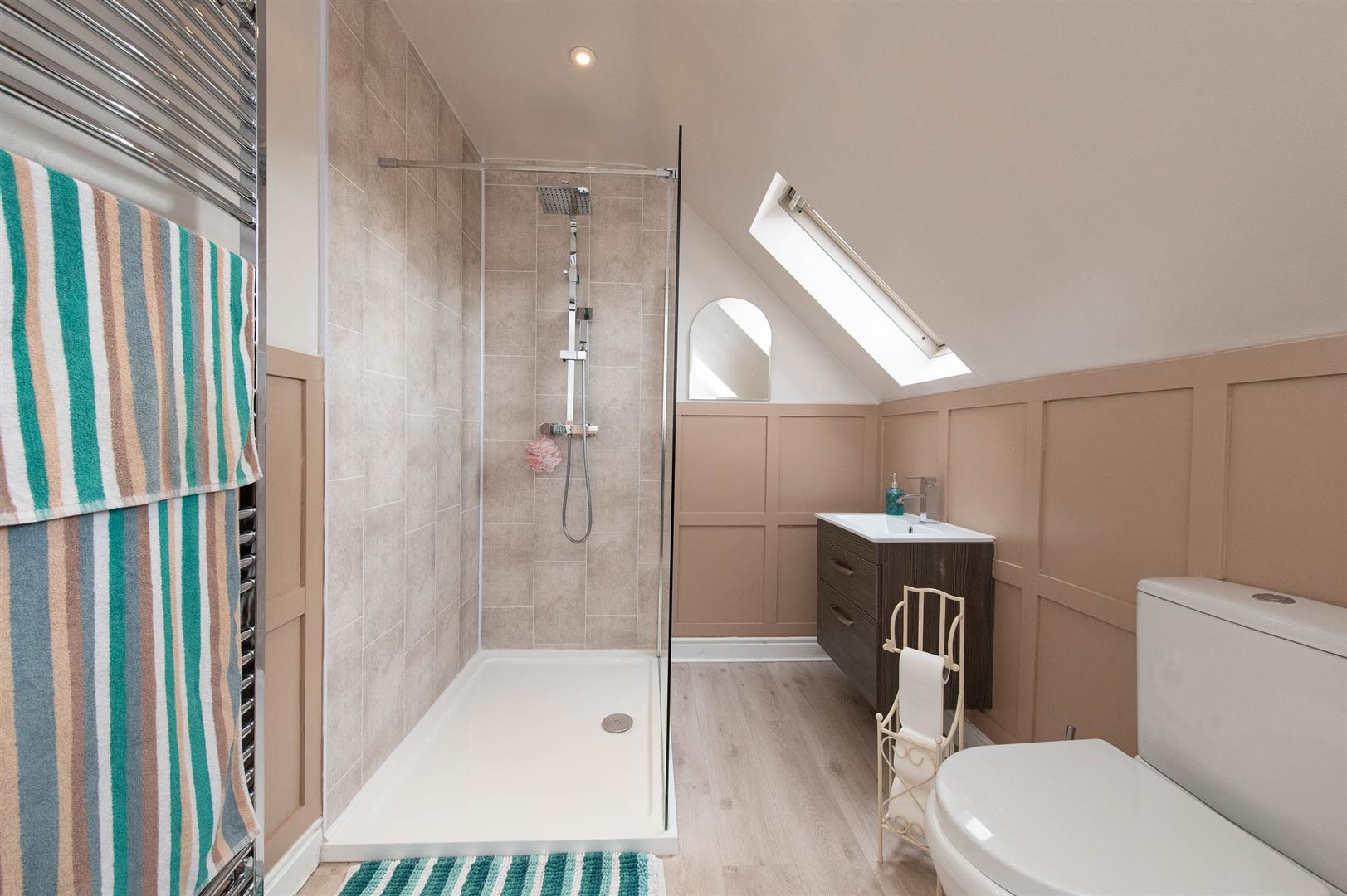 The ground floor comprises a welcoming lounge with open fire, a luxury kitchen with dining area, utility room, and a flexible fourth bedroom or family room, along with a convenient WC. Upstairs, there are three double bedrooms and a beautifully appointed family bathroom with separate shower.