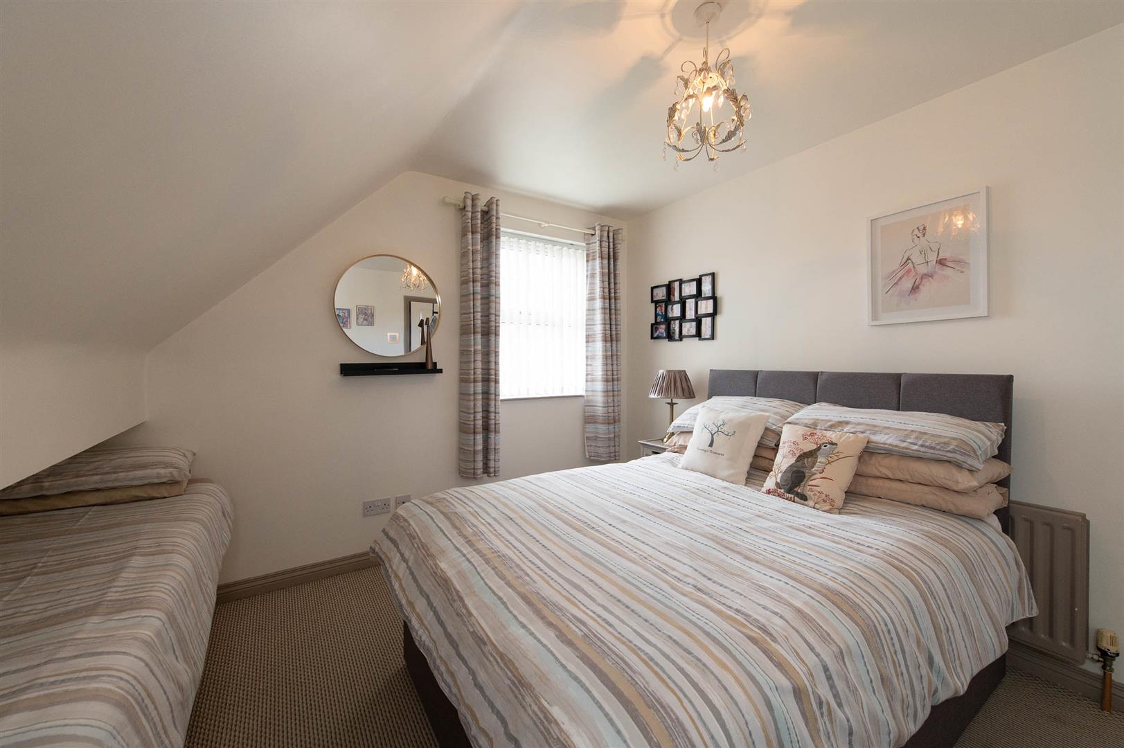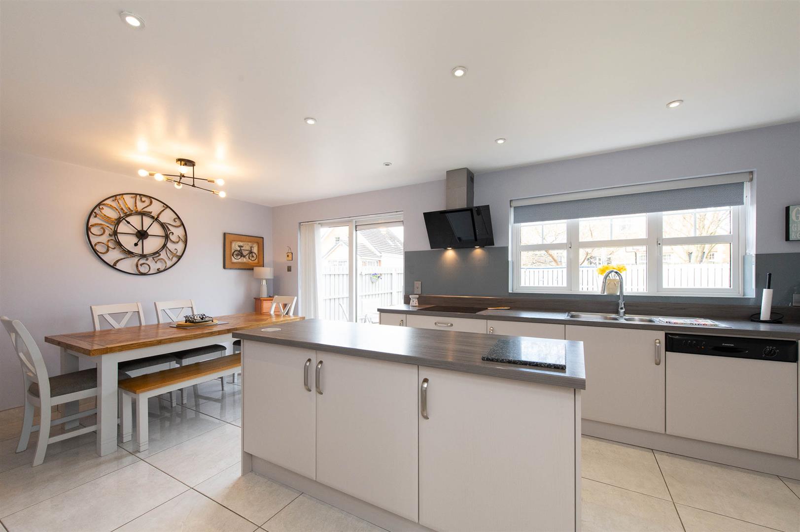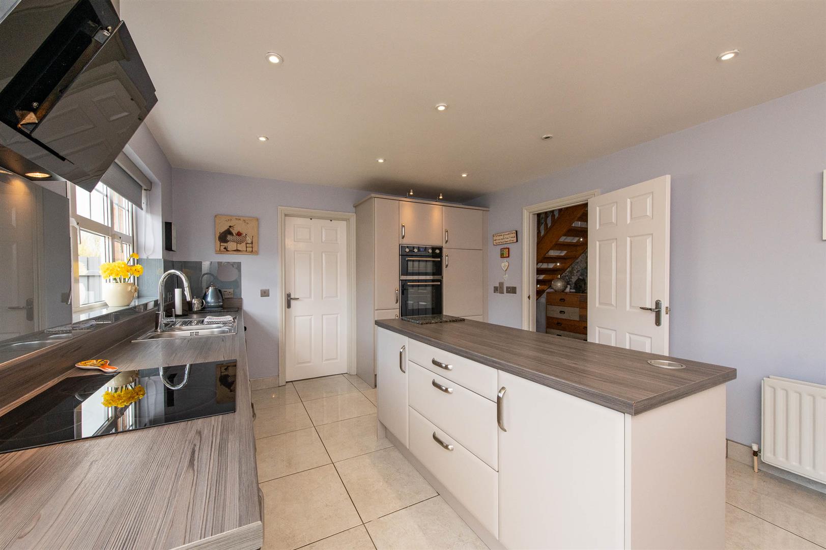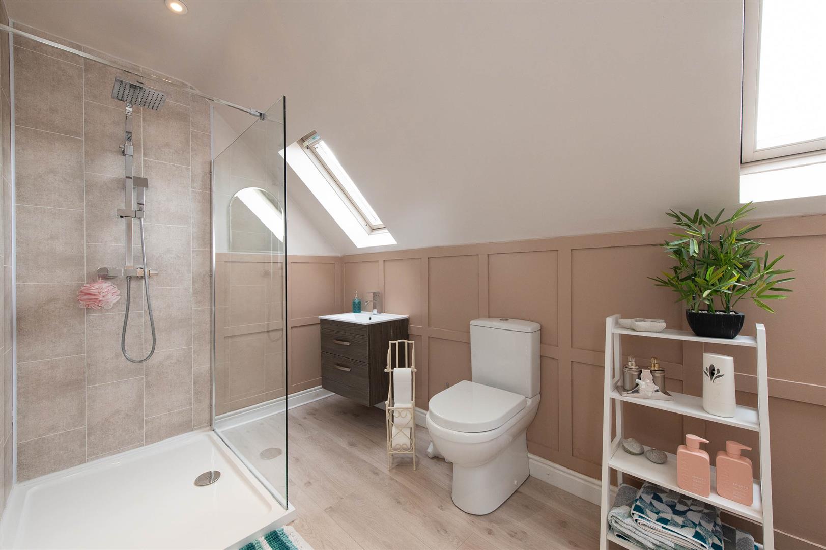 The ground floor comprises a welcoming lounge with open fire, a luxury kitchen with dining area, utility room, and a flexible fourth bedroom or family room, along with a convenient WC. Upstairs, there are three double bedrooms and a beautifully appointed family bathroom with separate shower.