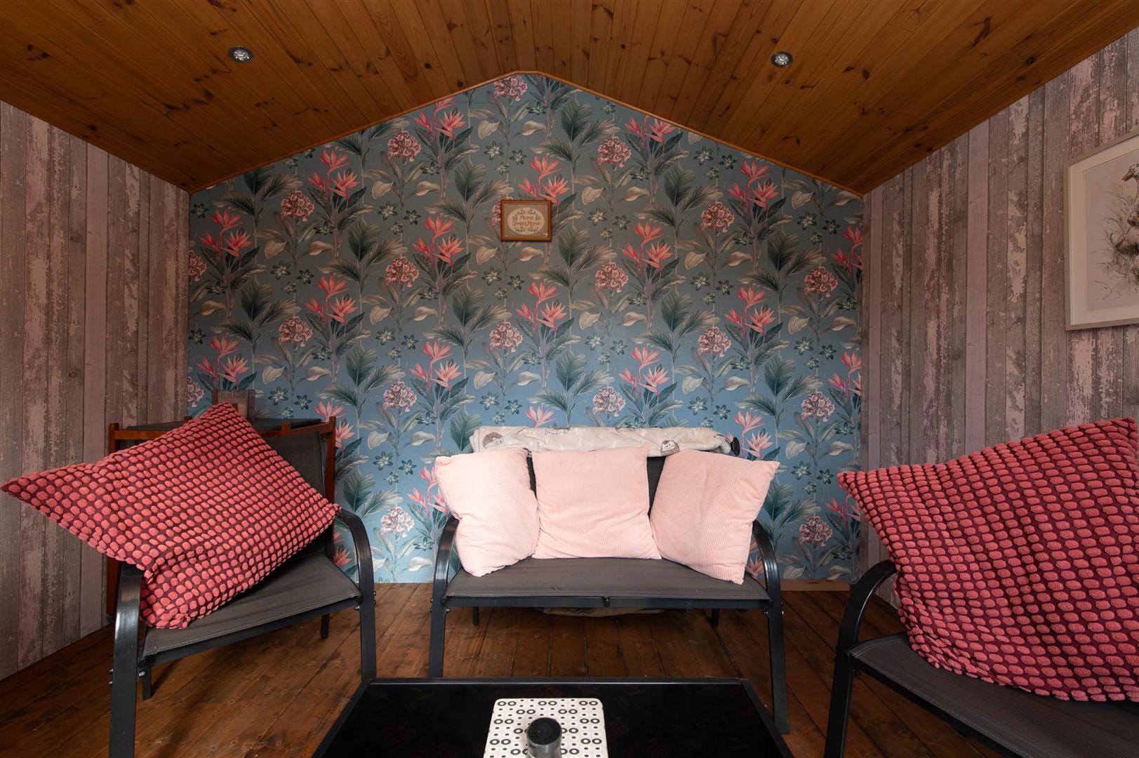 Externally, the property benefits from a tarmac driveway providing ample parking, and an enclosed, spacious rear garden and paved entertaining area. A standout feature is the insulated garden room, ideal for use as a home office, gym, or relaxation space, along with an additional garden shed.