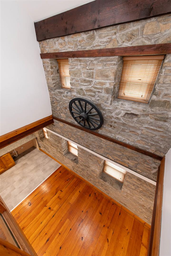 The striking stone walls remain a standout feature, reflecting the buildings heritage and timeless appeal.