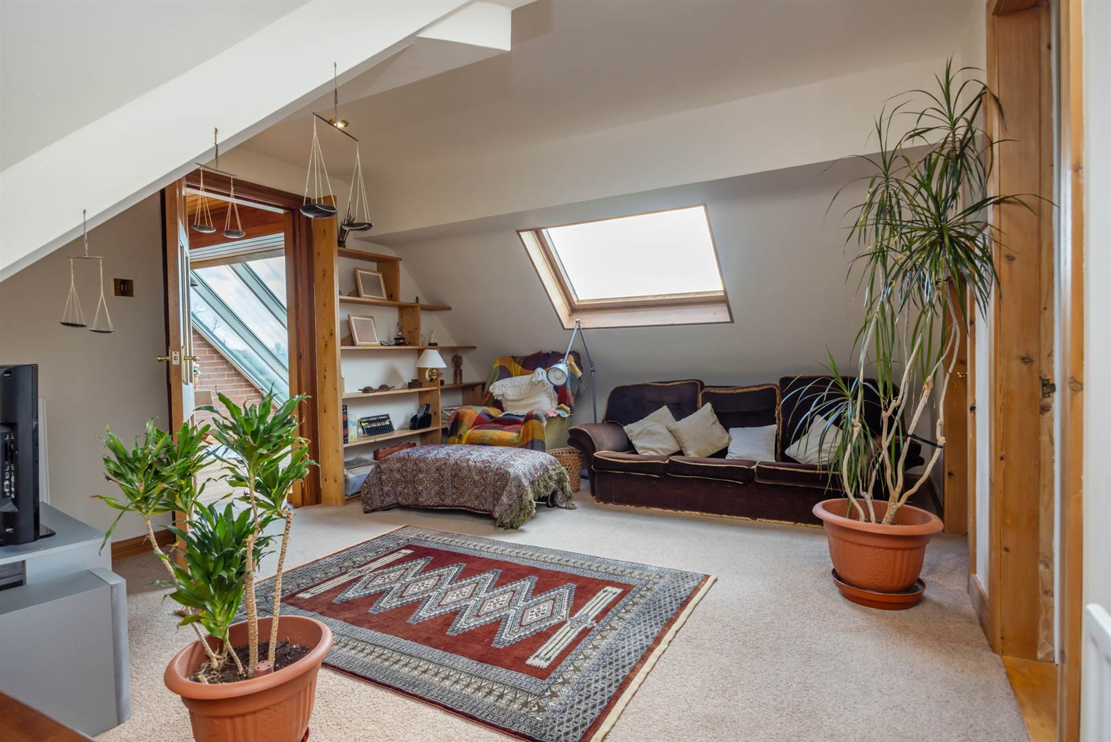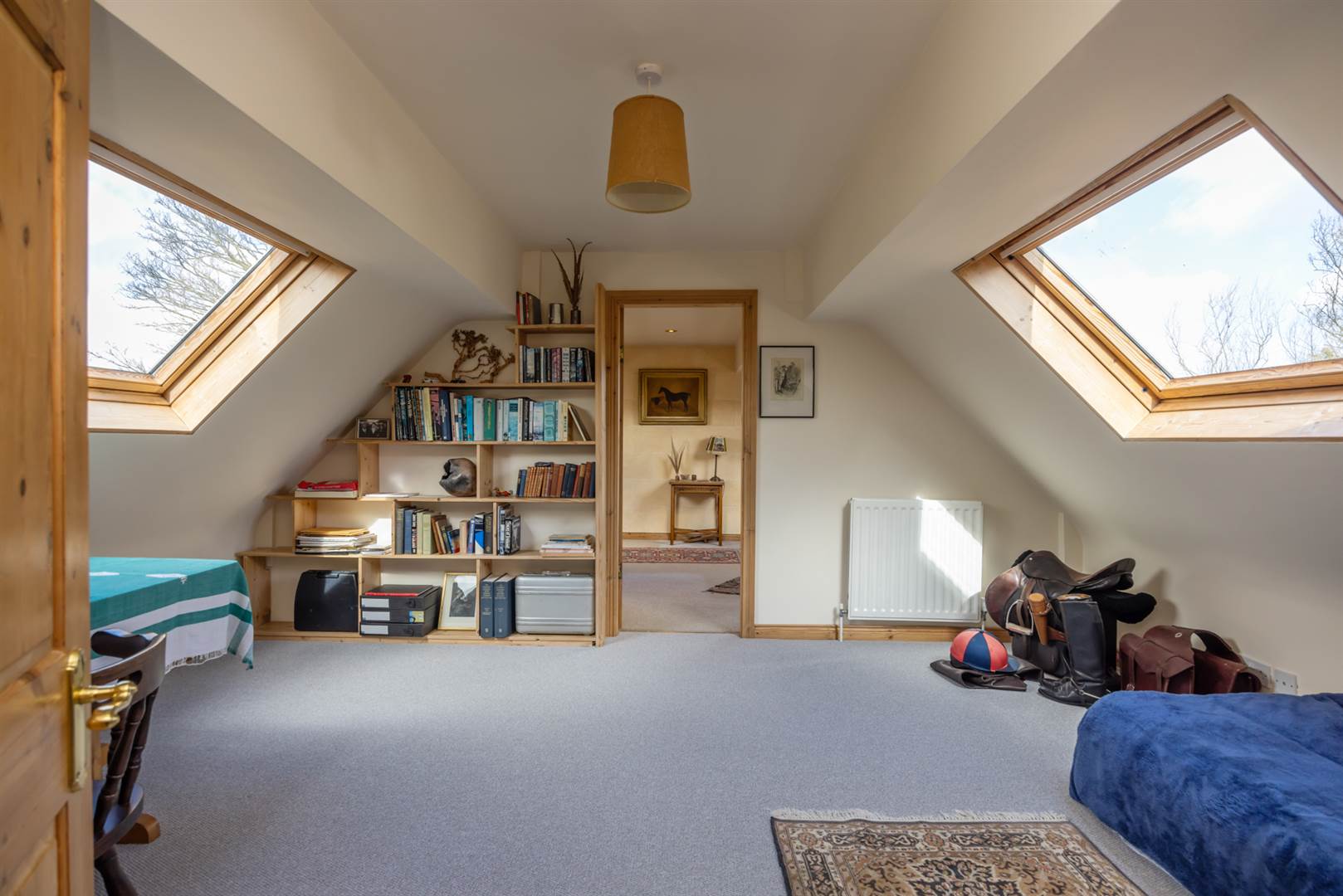 Double glazed Velux windows with rural views. Leading to: