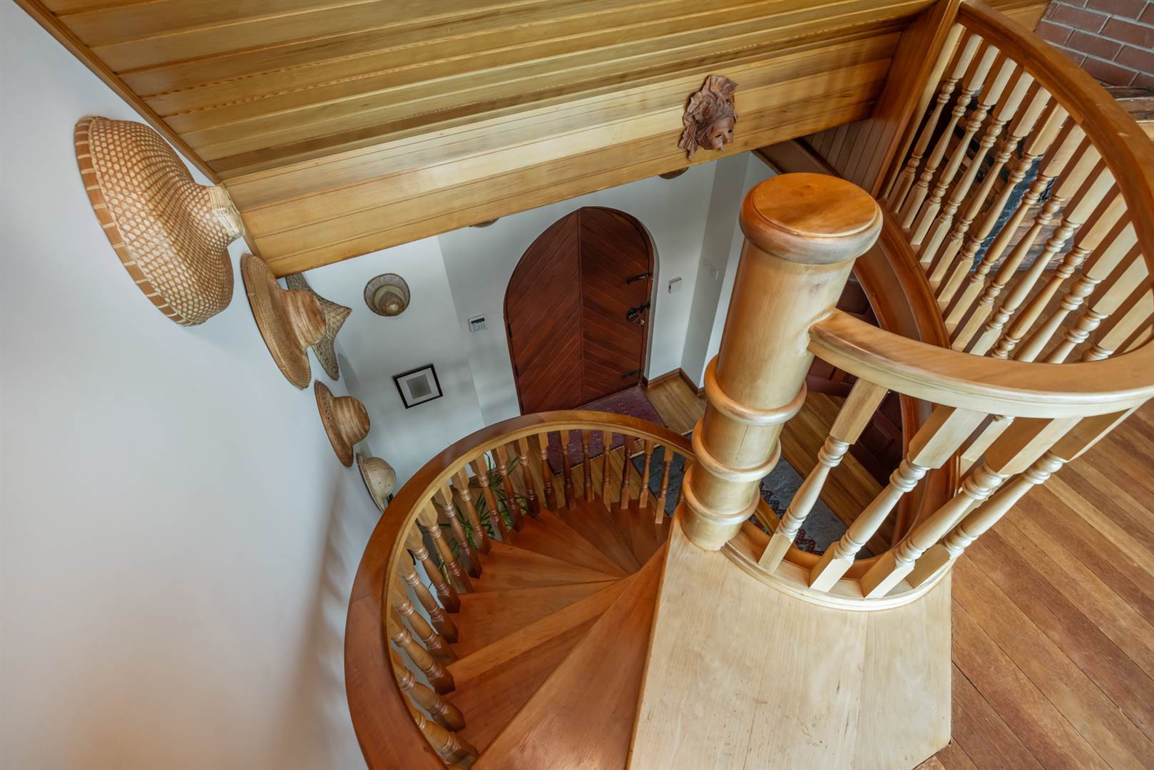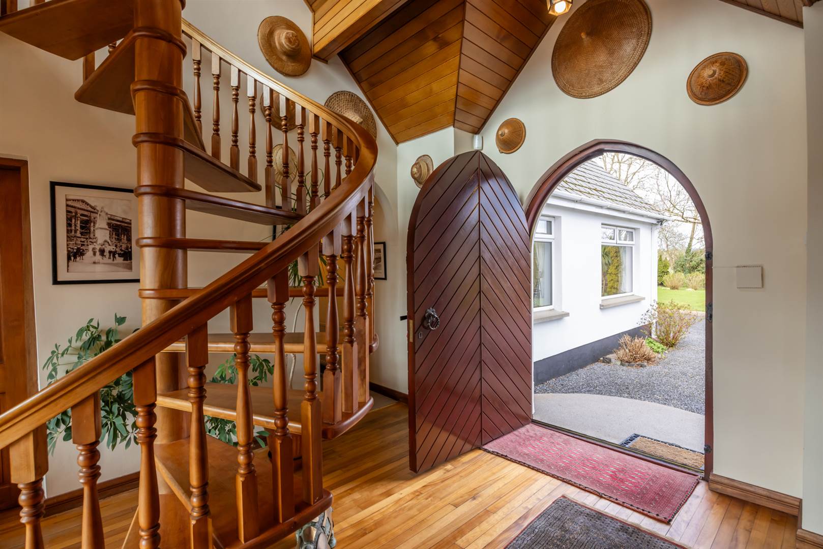 Hardwood arched front door.