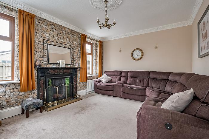 Original wooden door, Original stone mantle piece with cast iron inset fireplace, Tiled hearth, 2 x Double panel radiators, uPVC double glazed window x 4, Original ceiling rose and cornicing.