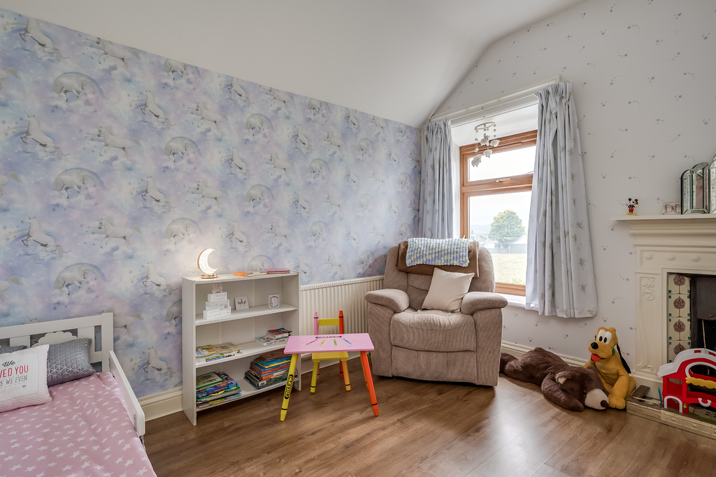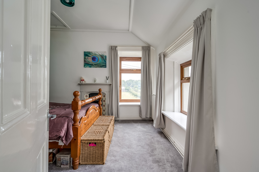 Original wooden door, Double panel radiator, 2 x uPVC double glazed windows (dual aspect), Cast iron fireplace, Tiled hearth, Access to roof-space.