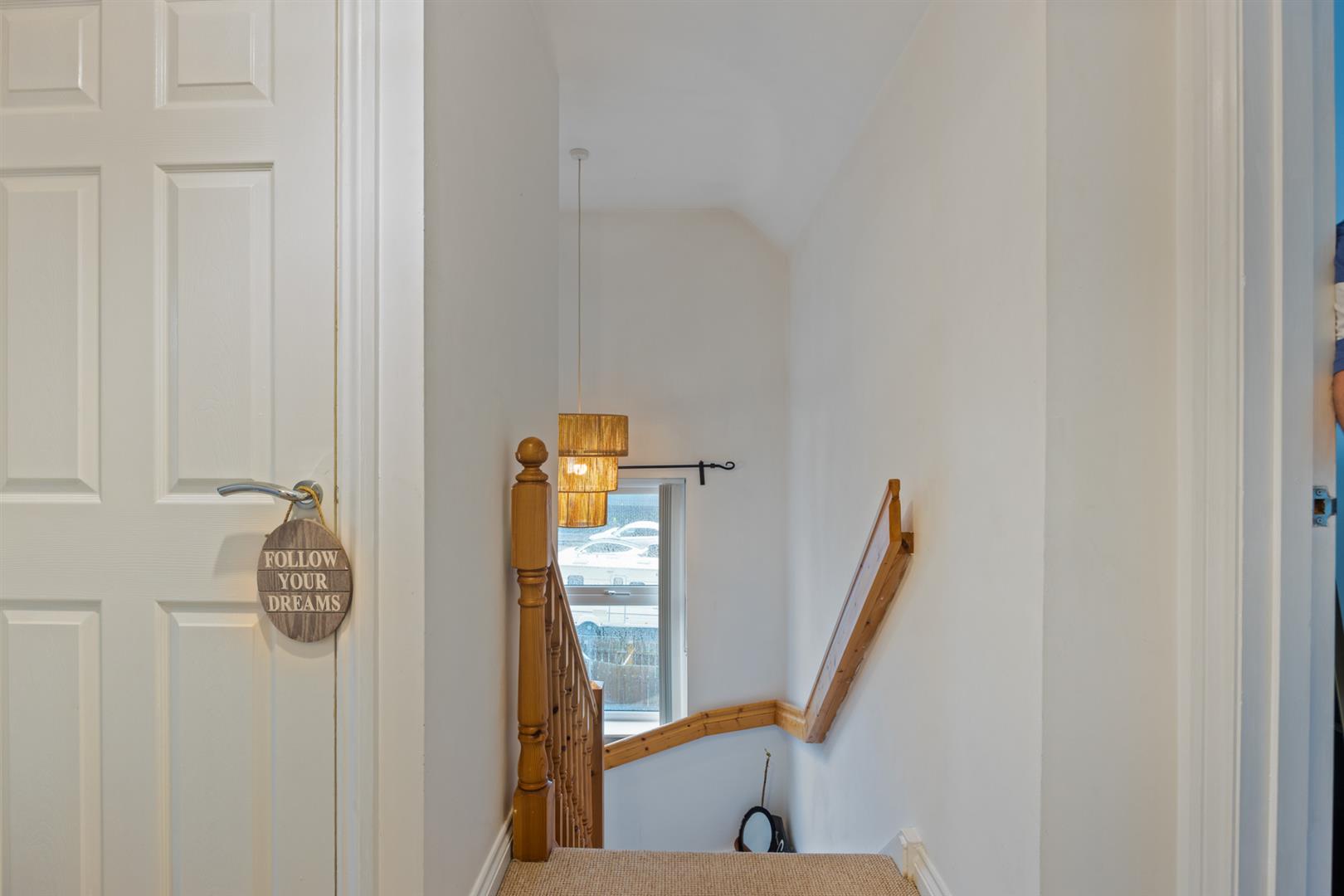 Wooden front door into bright entrance hall.