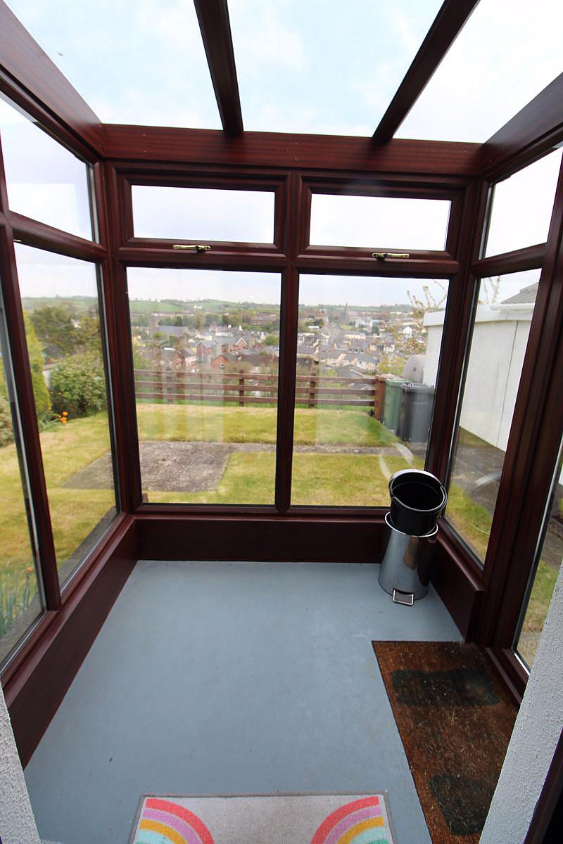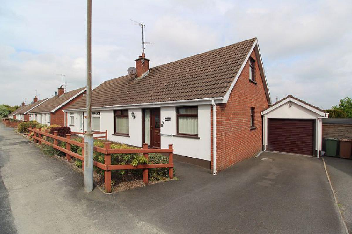 Front gardens with mature shrubs and timber fencing, tarmac driveway. Enclosed rear gardens with patio area and gardens laid in lawns, outside light and tap. Excellent views over Dromore.