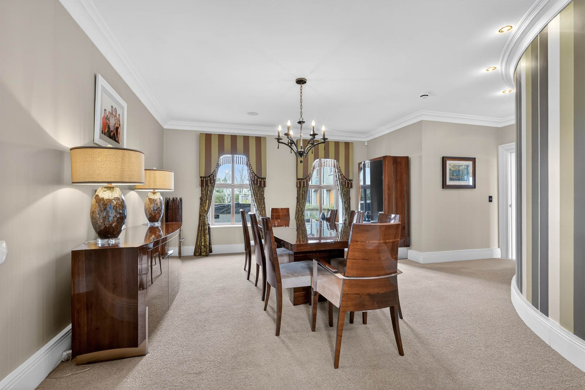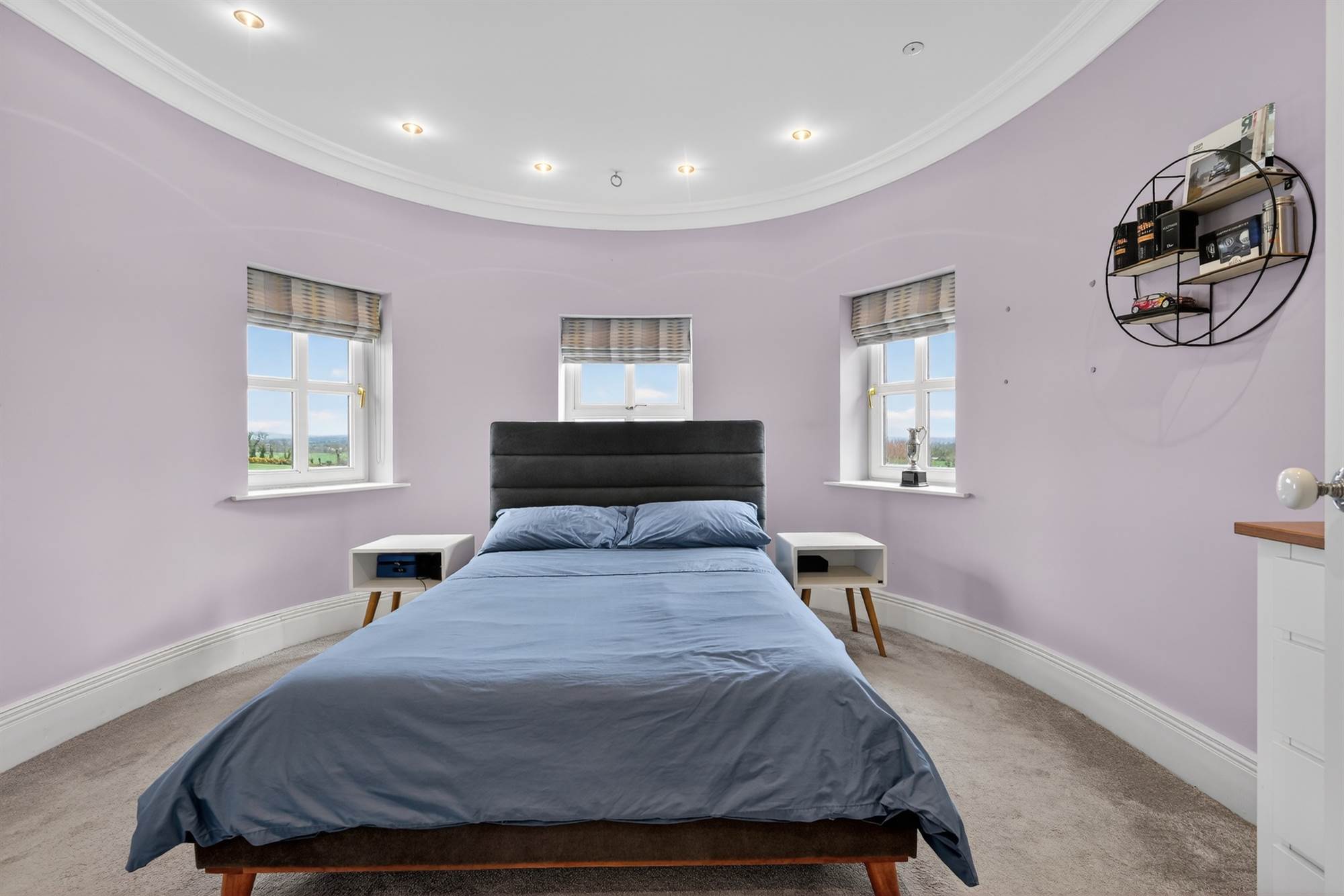 Cornice ceiling, low voltage spotlights, feature circular wall.