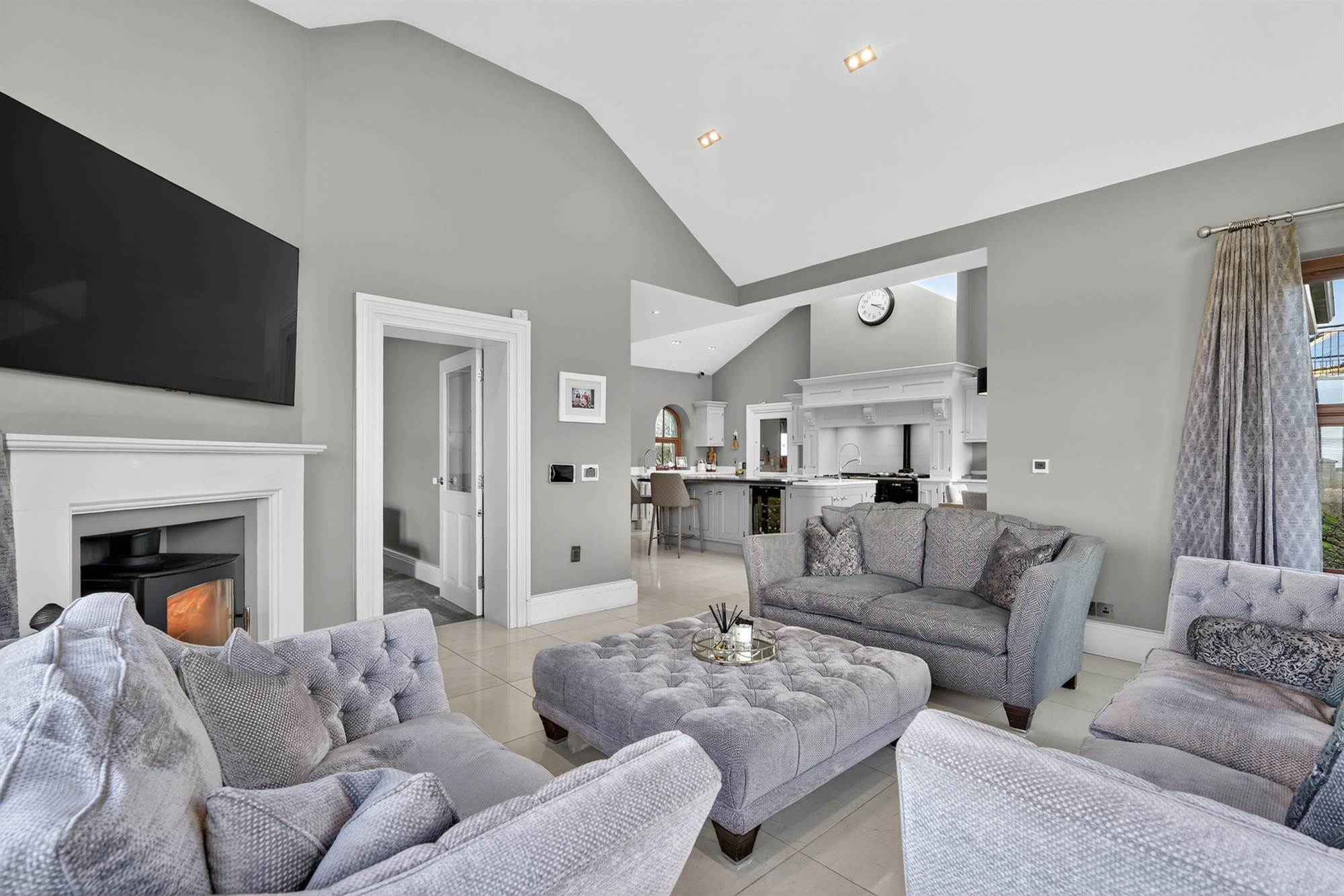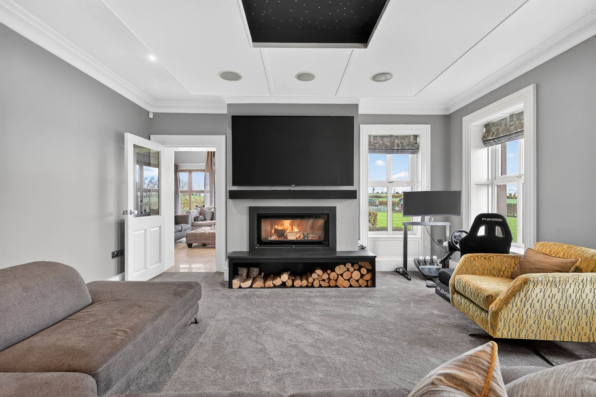 Sitting Room with Wall Mounted Gas Fire and LED Ceiling Lighting