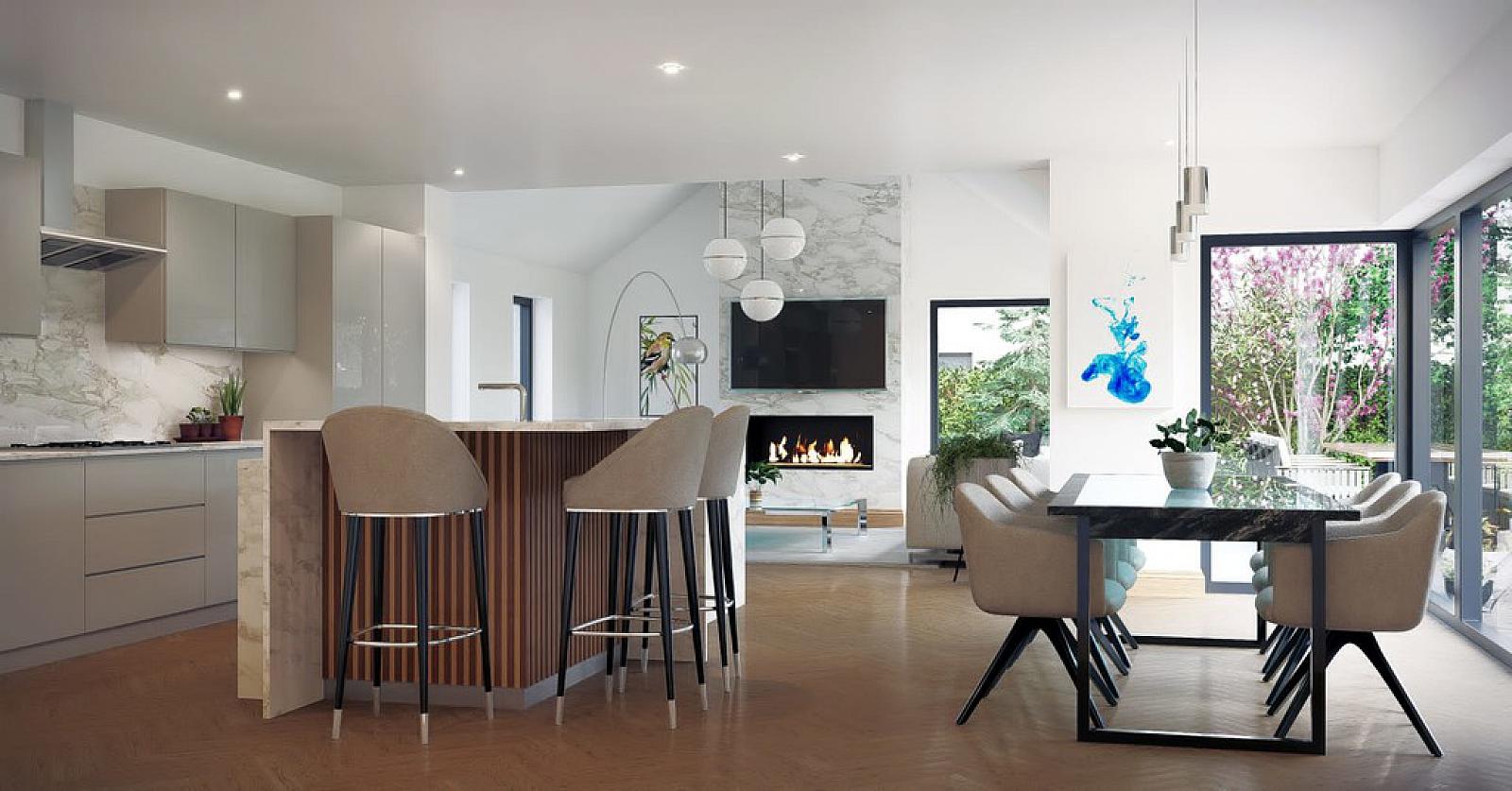 Internally the property will be finished to the highest of standards throughout. Generous flexible family accommodation is on offer with special note to the magnificent open plan living / dining / kitchen area with vaulted ceiling to the living area and corner windows overlooking the grounds to the rear.