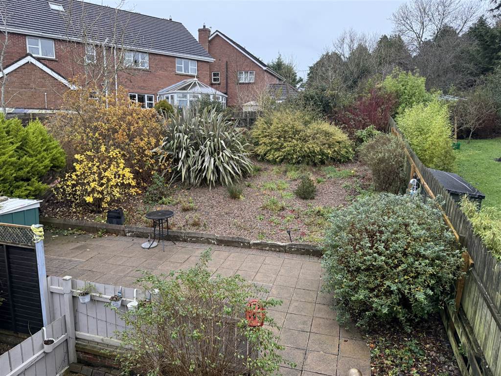 Tarmac driveway providing ample off-street car parking. Front garden in lawn. Enclosed rear with raised paved patio and shower area with mix of shrubs. Outside light and tap.