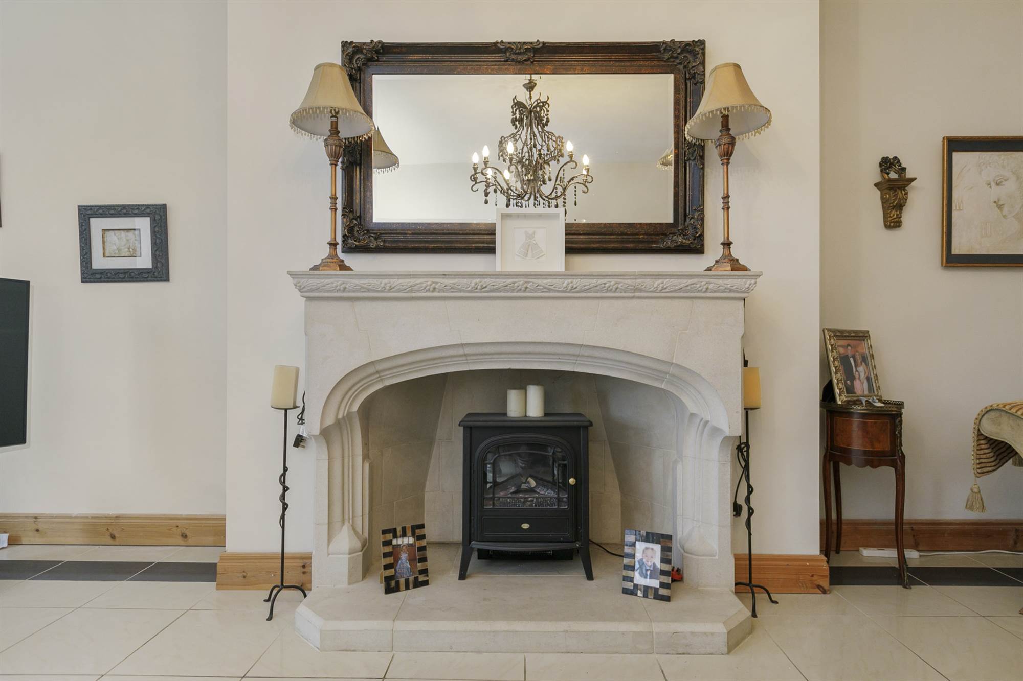 Solid wooden floor. Feature stone fireplace with multi-fuel stove. Twin doors to Reception Hall.