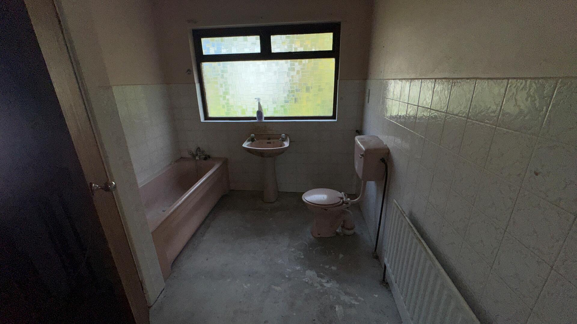 Coloured bath wc and wash hand basin. 1 single panel radiator. Partly tiled. Hotpress with Immersion heater.