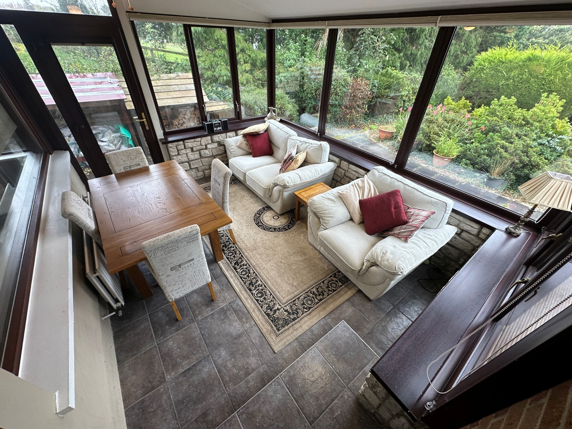 Marble fireplace with wood burner wih Dining area. 3 double panel radiators. 3 double power points.5 single power points. Tiled floor