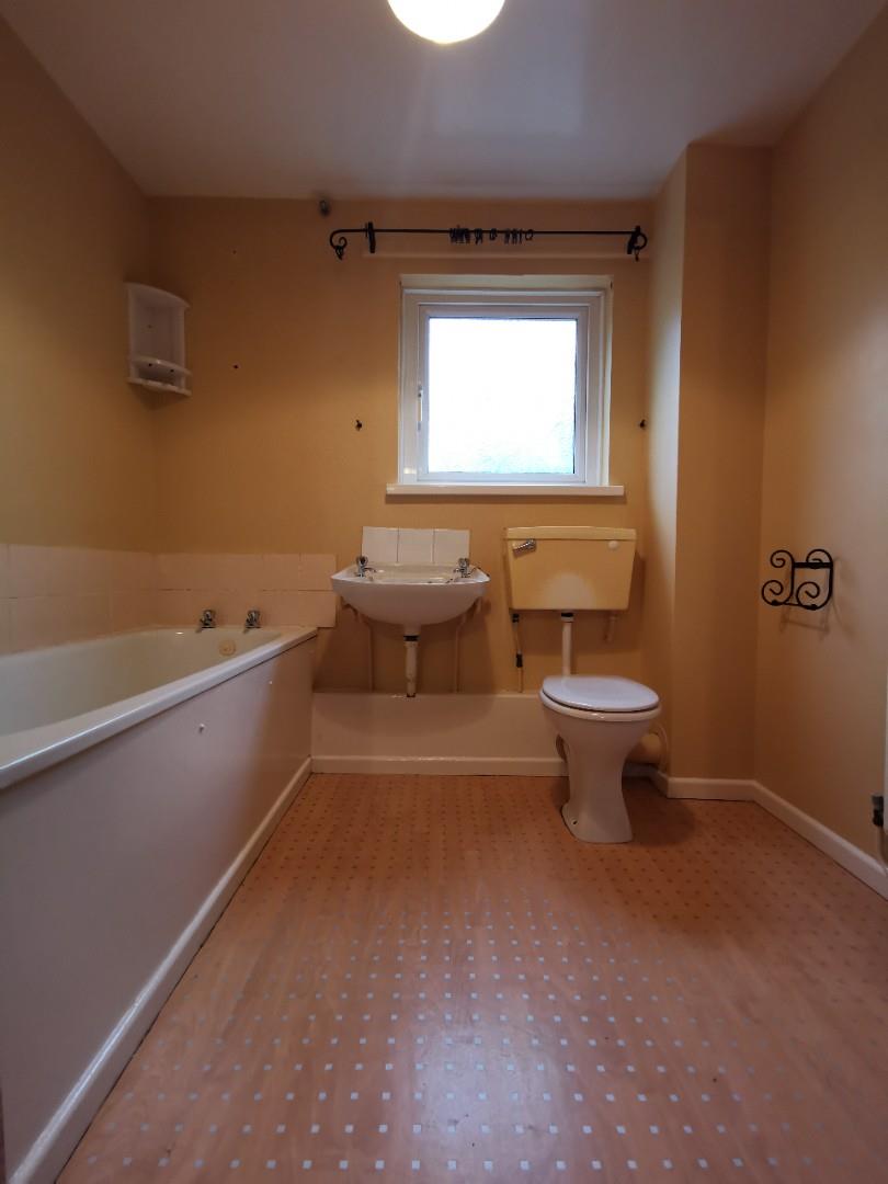 A spacious bathroom with plenty of room to upgrade to include a separate shower.