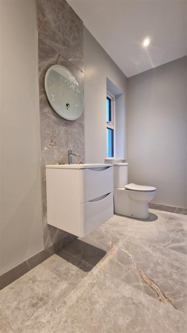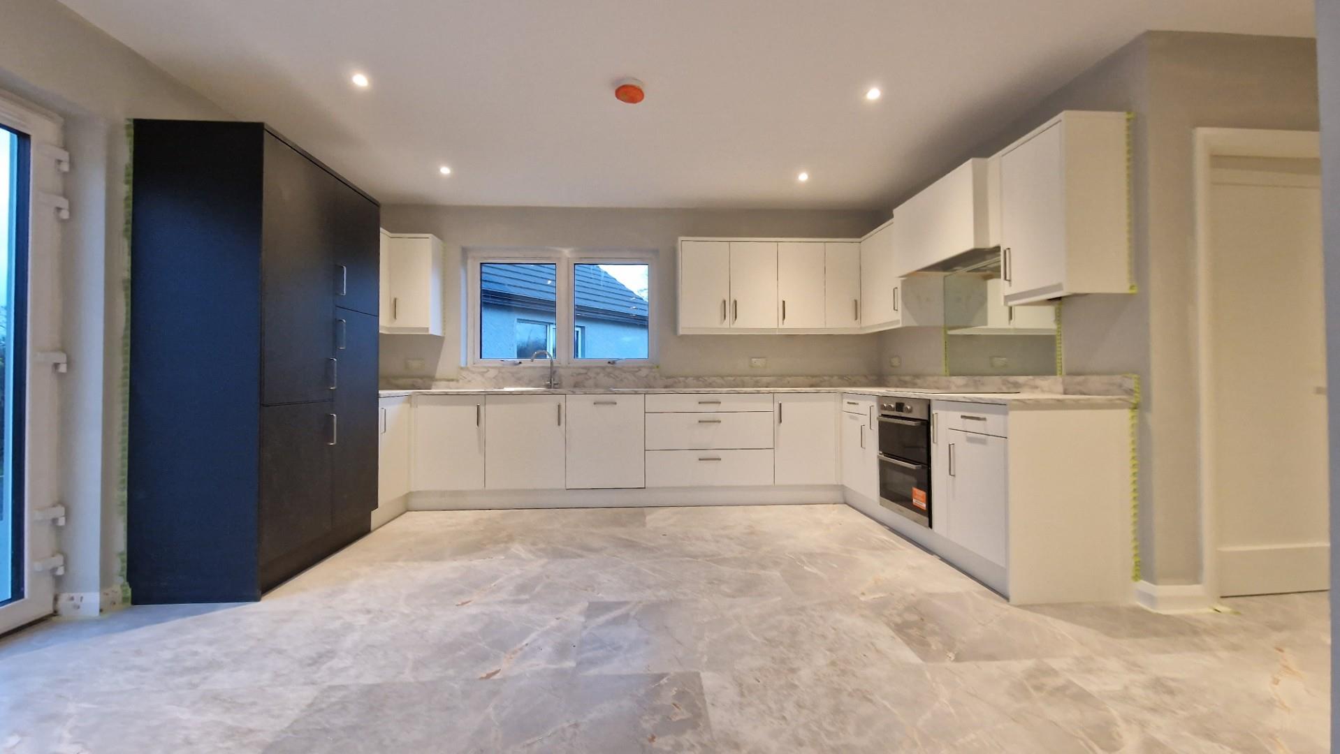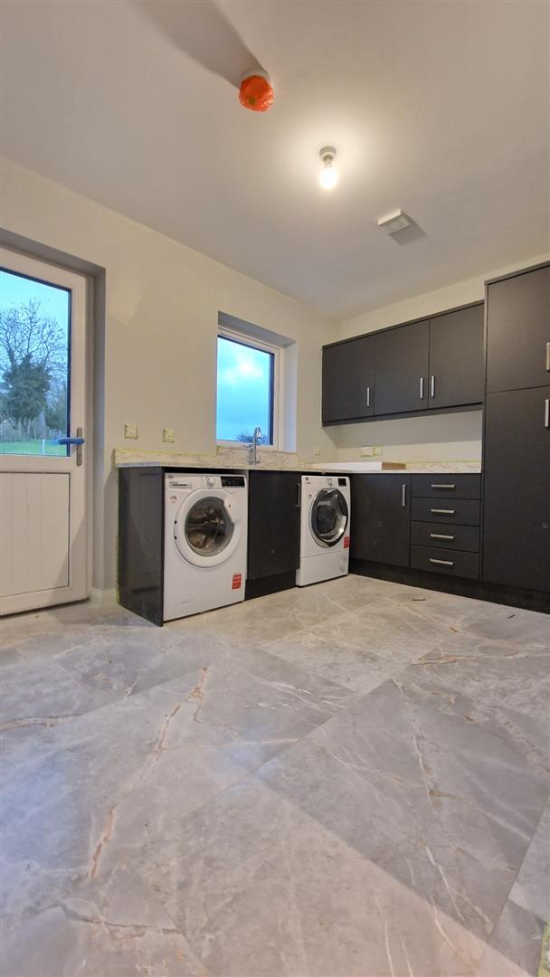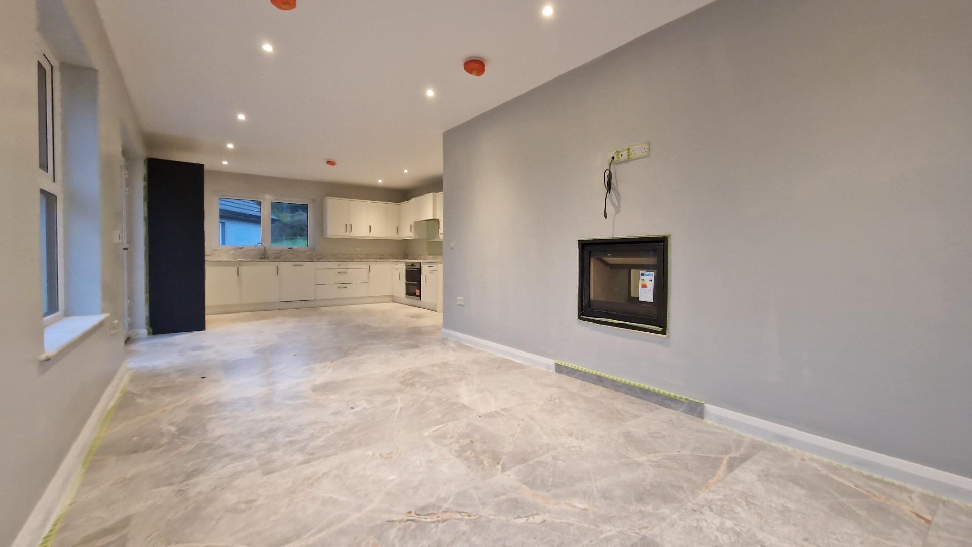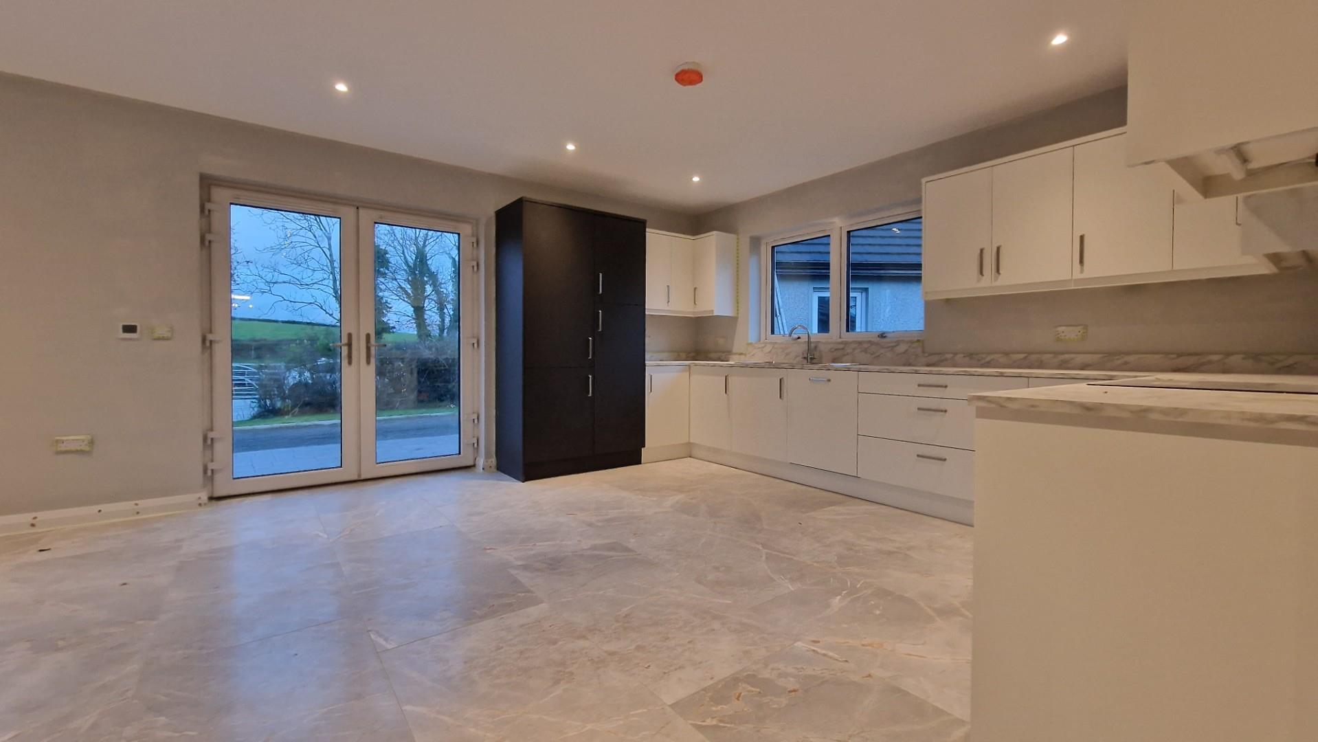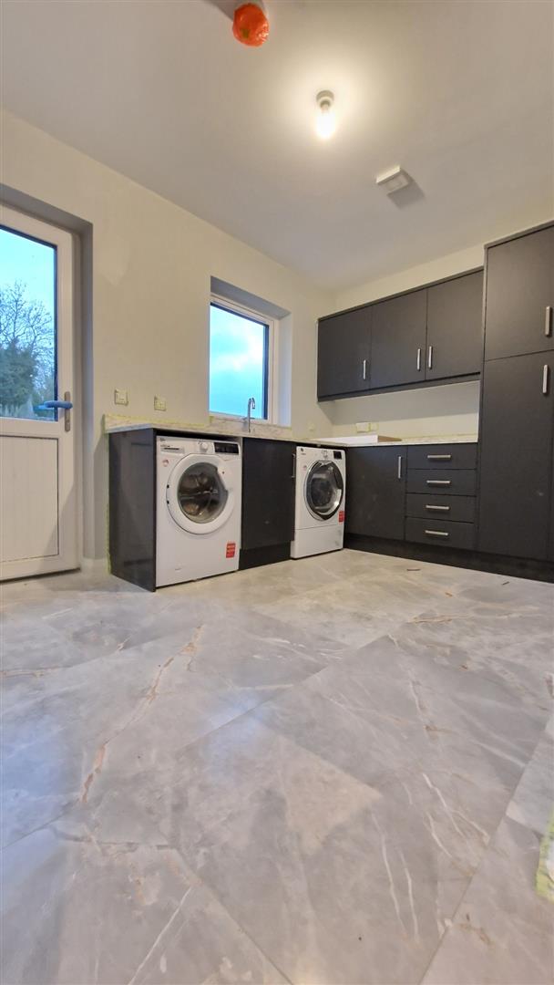The bungalow boasts a luxury finish throughout. From the entrance hall is a modern family lounge and an open plan kitchen/dining/living area, utility room and WC. Off the hallway are 4 double bedrooms, the master benefitting from an en-suite and a there is also a beautiful family bathroom. The property is surrounded by gardens laid in lawn, low maintenance galvanised steel fencing, a tarmac driveway and a garage. There is surplus parking to the front and a gated entrance. The property avails of an air source heating pump which is excellent for heating your home and hot water. There is also an open fire in the lounge that backs onto the open plan kitchen as well as double glazing throughout, underfloor heating and the property is incredibly well insulated, therefore this home will keep you extra cosy through the winter.