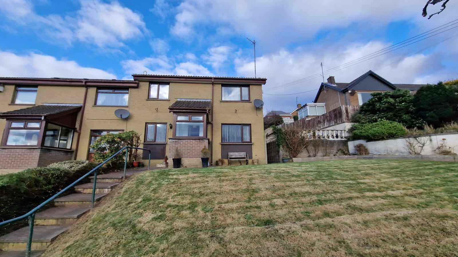Internally this property boasts a spacious lounge, modern fitted kitchen, downstairs WC, family bathroom and 3 well proportioned bedrooms. Externally the home is surrounded by gardens and a split level patio.