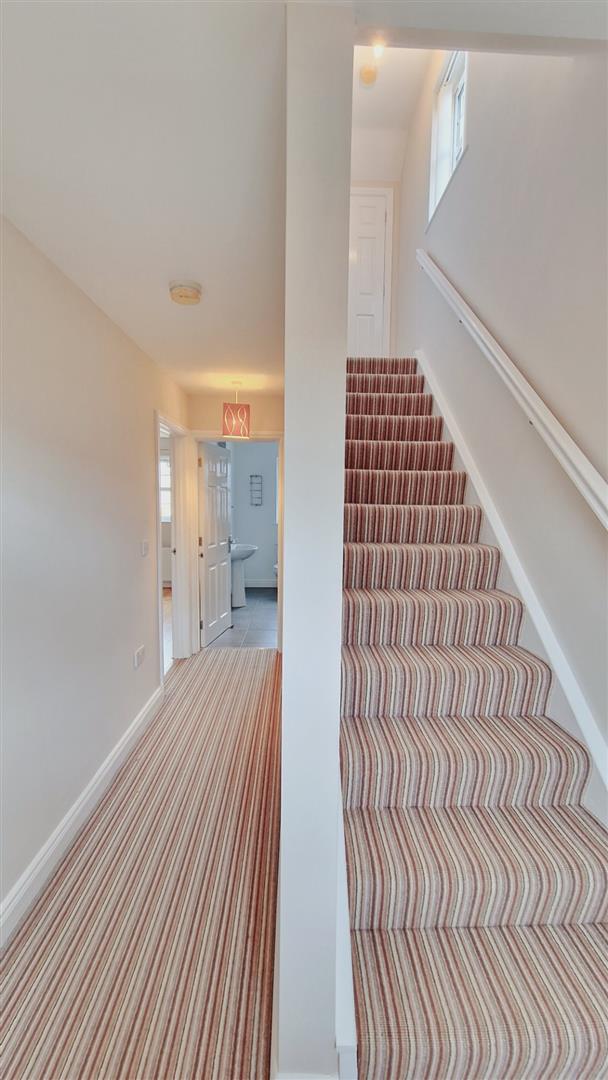 Internally the property boasts a large and spacious hallway leading to a large and bright living room leading to a spacious kitchen/dining area plus tucked away is a downstairs WC. The property has three good sized bedrooms (bedroom two and three on first floor and master with en suite on second floor) and a large family bathroom with modern white suite. Externally is a stunning spacious driveway, and gardens laid in lawn surrounding the property.