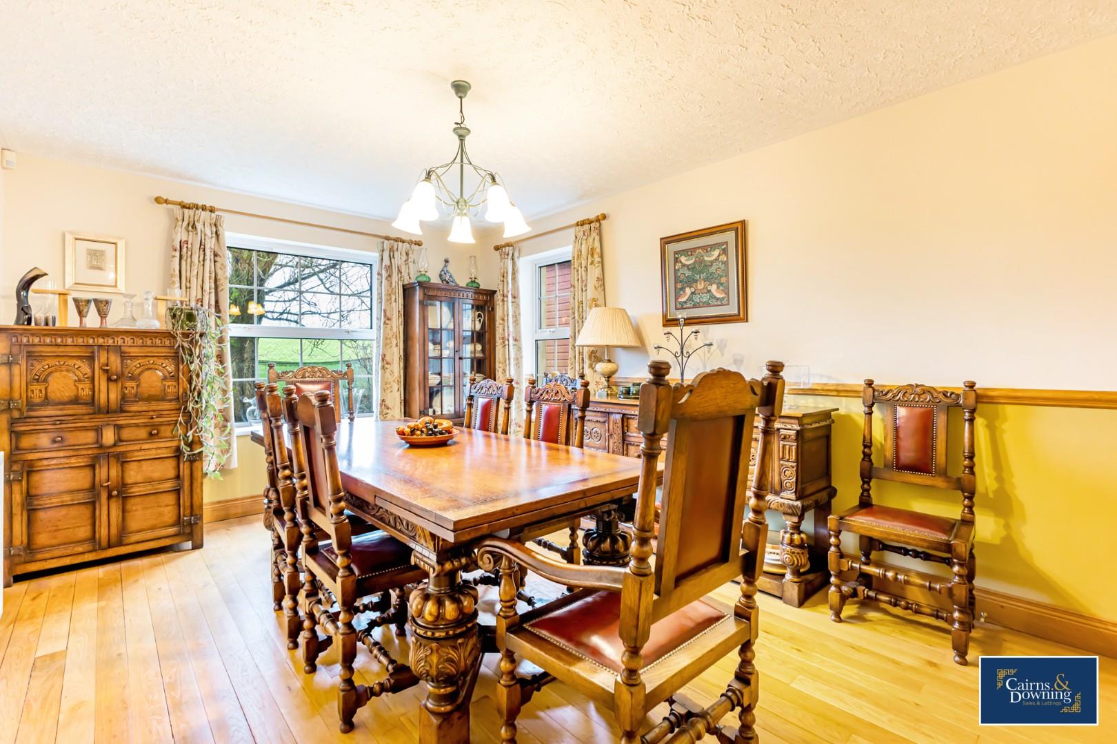 The property is designed for both relaxation and entertainment, with three separate reception rooms. Two inviting family living rooms, each adorned with charming feature fireplaces, create the perfect atmosphere for cosy evenings. Additionally, a well-appointed dining room provides an ideal setting for family gatherings and special occasions.
