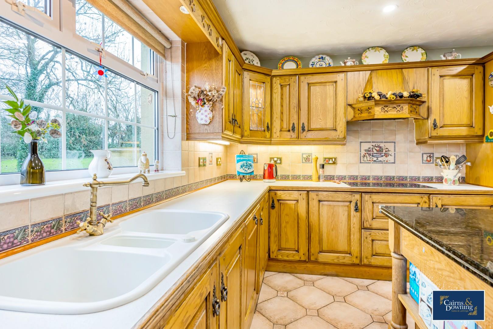 The heart of the home is undoubtedly the large solid oak kitchen, which is complemented by a spacious dining area and a central island, making it a delightful space for culinary enthusiasts and family meals alike. There is also a spacious utility room with a downstairs W/C.