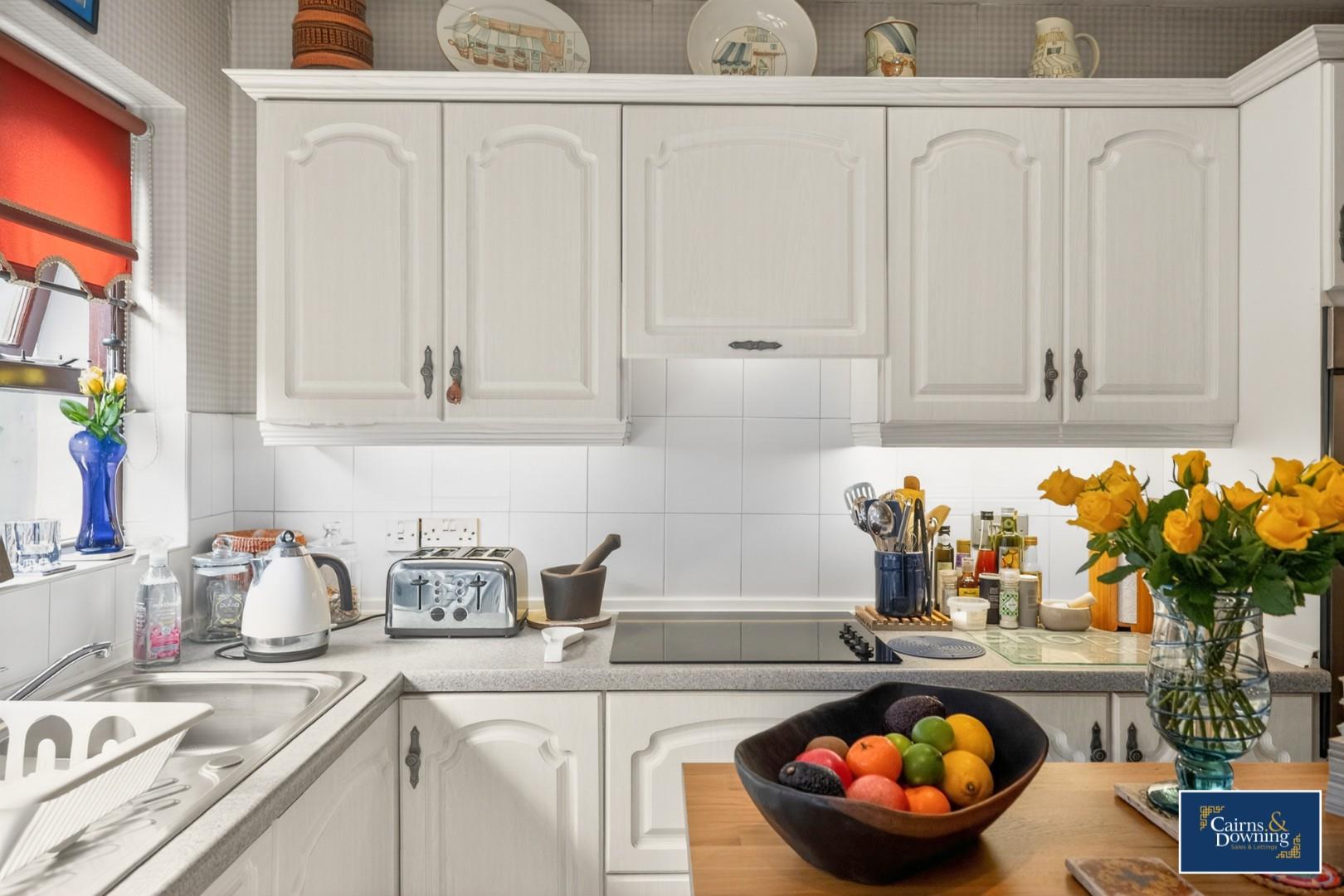 A lovely bright & airy kitchen & dining space with a range of high & low level units. Eye level integrated oven & electric cooking hob. Window & door to the rear leading to garden.