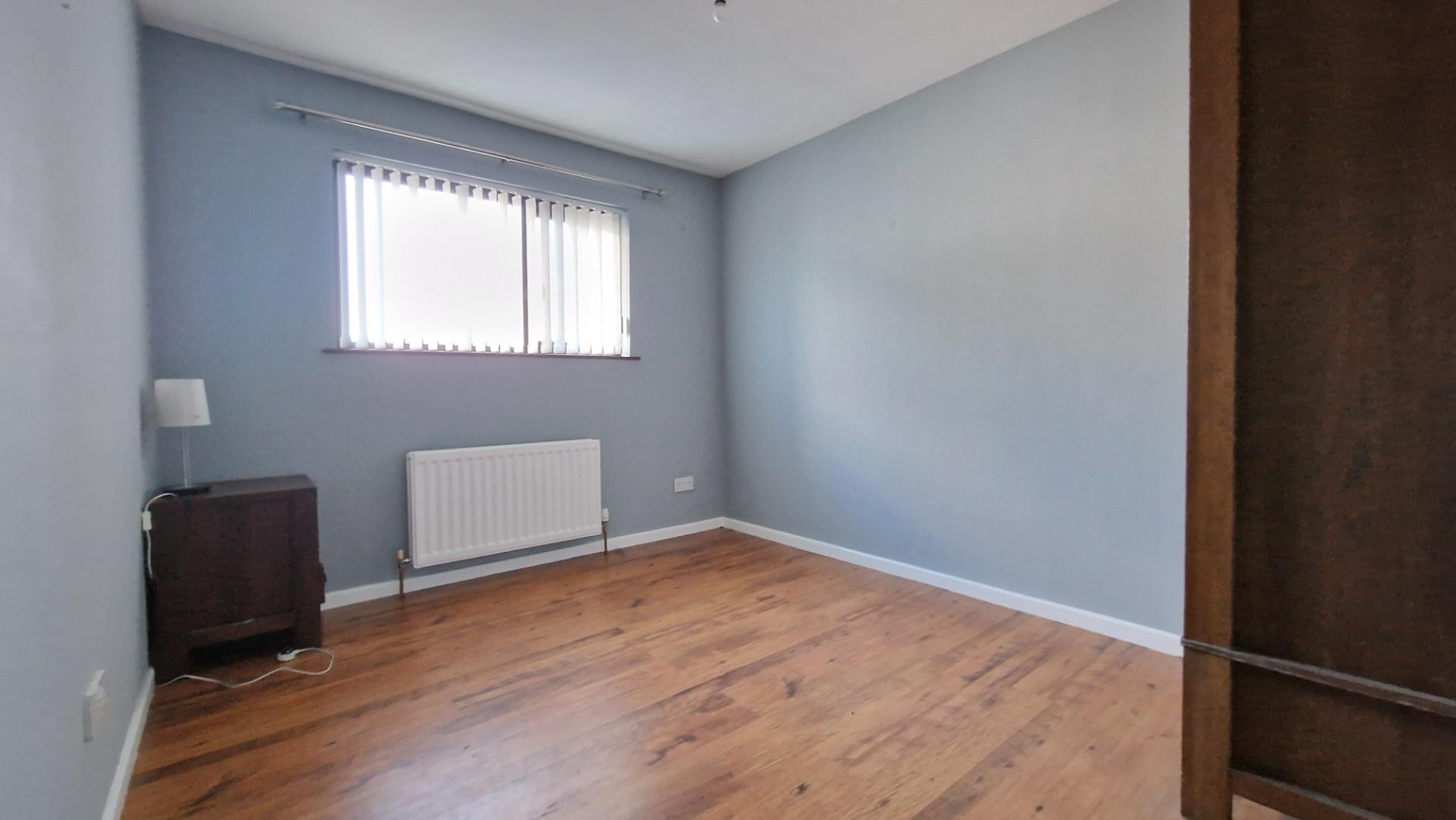 Wood effect flooring. Large window to the rear.