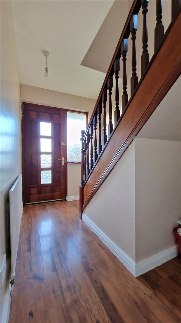 Wood effect flooring. Staircase on the left hand wall.