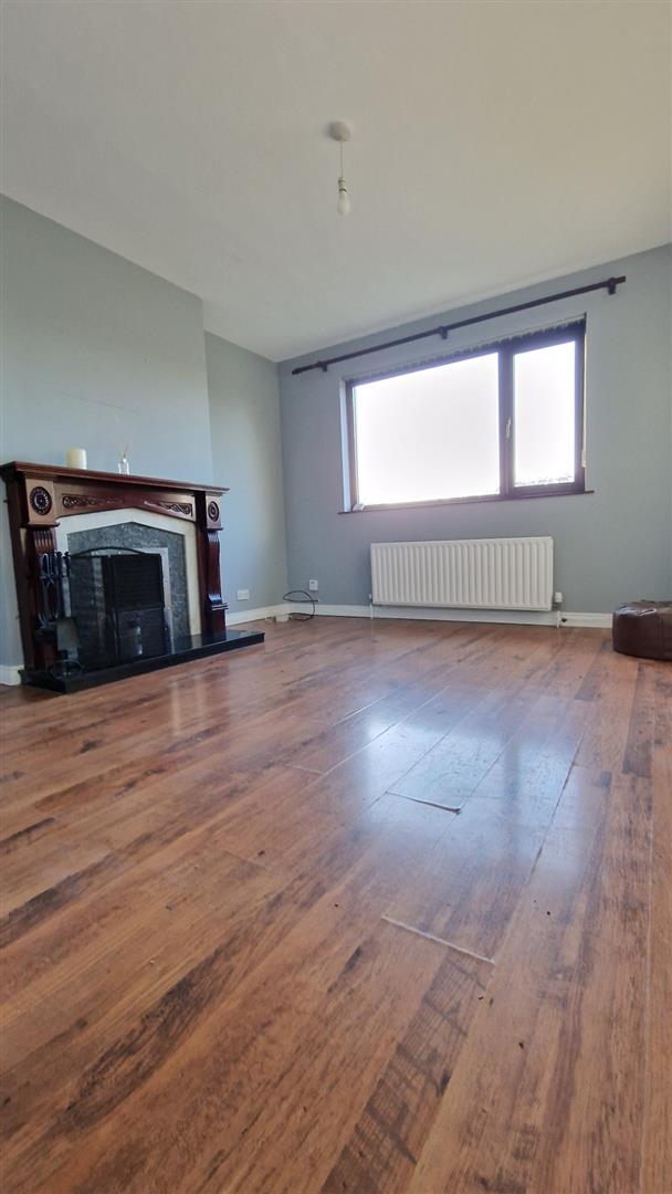 Wood effect flooring. Large window at the front. Open fireplace
