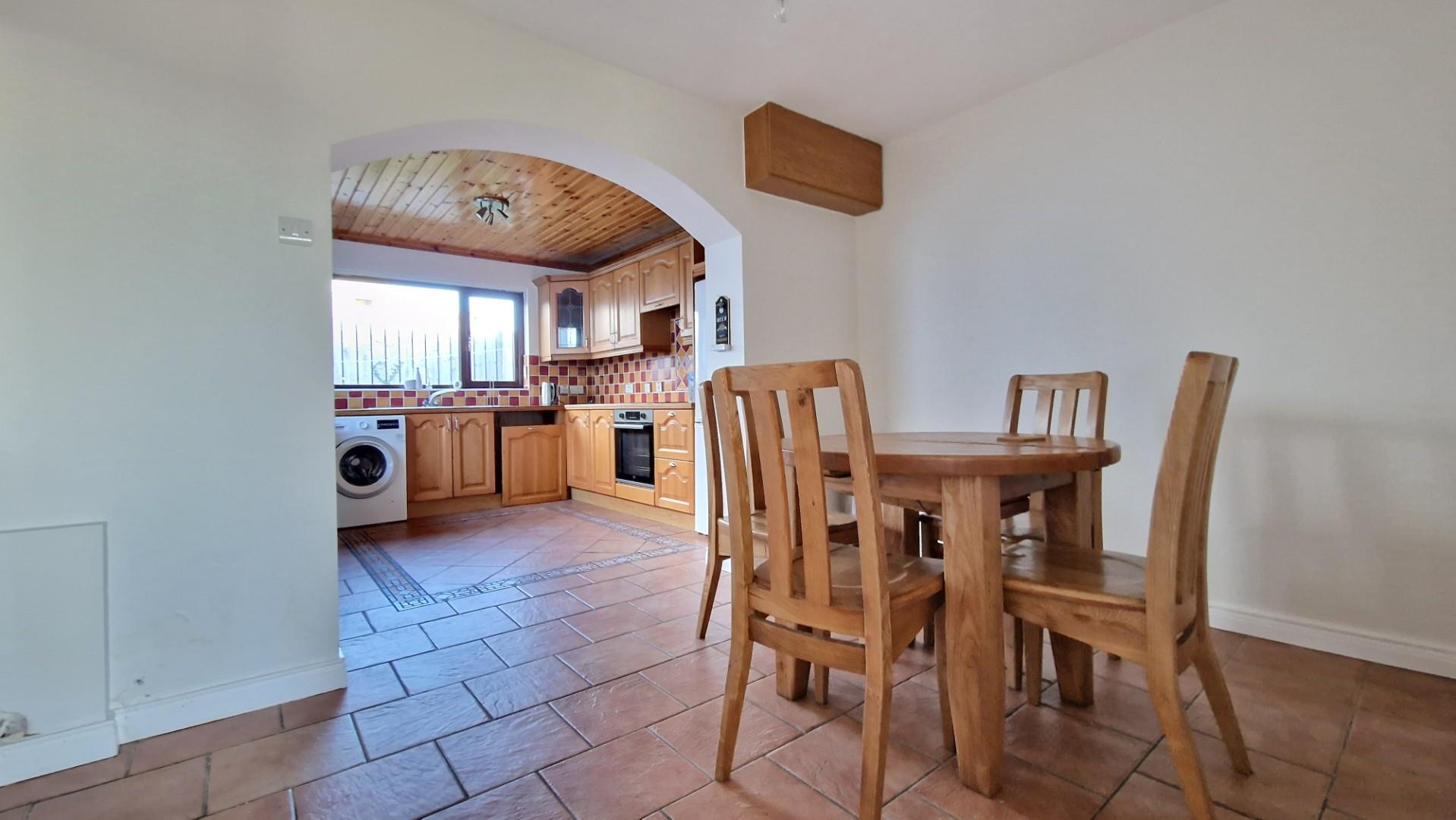 As you enter, you are welcomed into a bright and airy family living room, complete with a delightful fireplace that adds a touch of warmth and character to the home. This inviting space is perfect for both entertaining guests and enjoying quiet evenings with loved ones. At the rear of the property is the well sized kitchen and dining area which has plenty of natural light coming in.