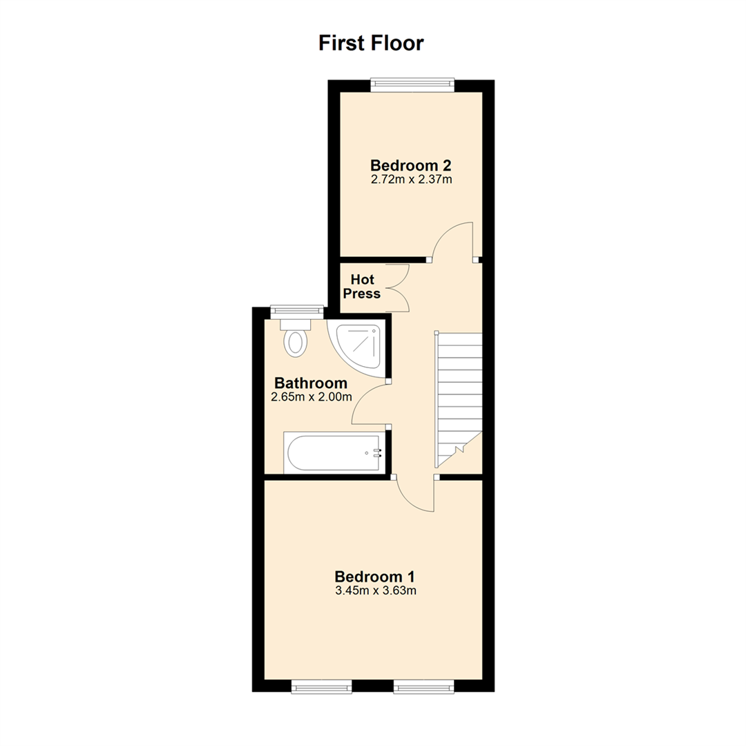 The house comprises two well-proportioned bedrooms, providing ample space for rest and personalisation. The newly renovated bathroom adds a touch of luxury, ensuring comfort for all residents. The house has also been fitted with a new boiler and has been completely re-wired throughout.