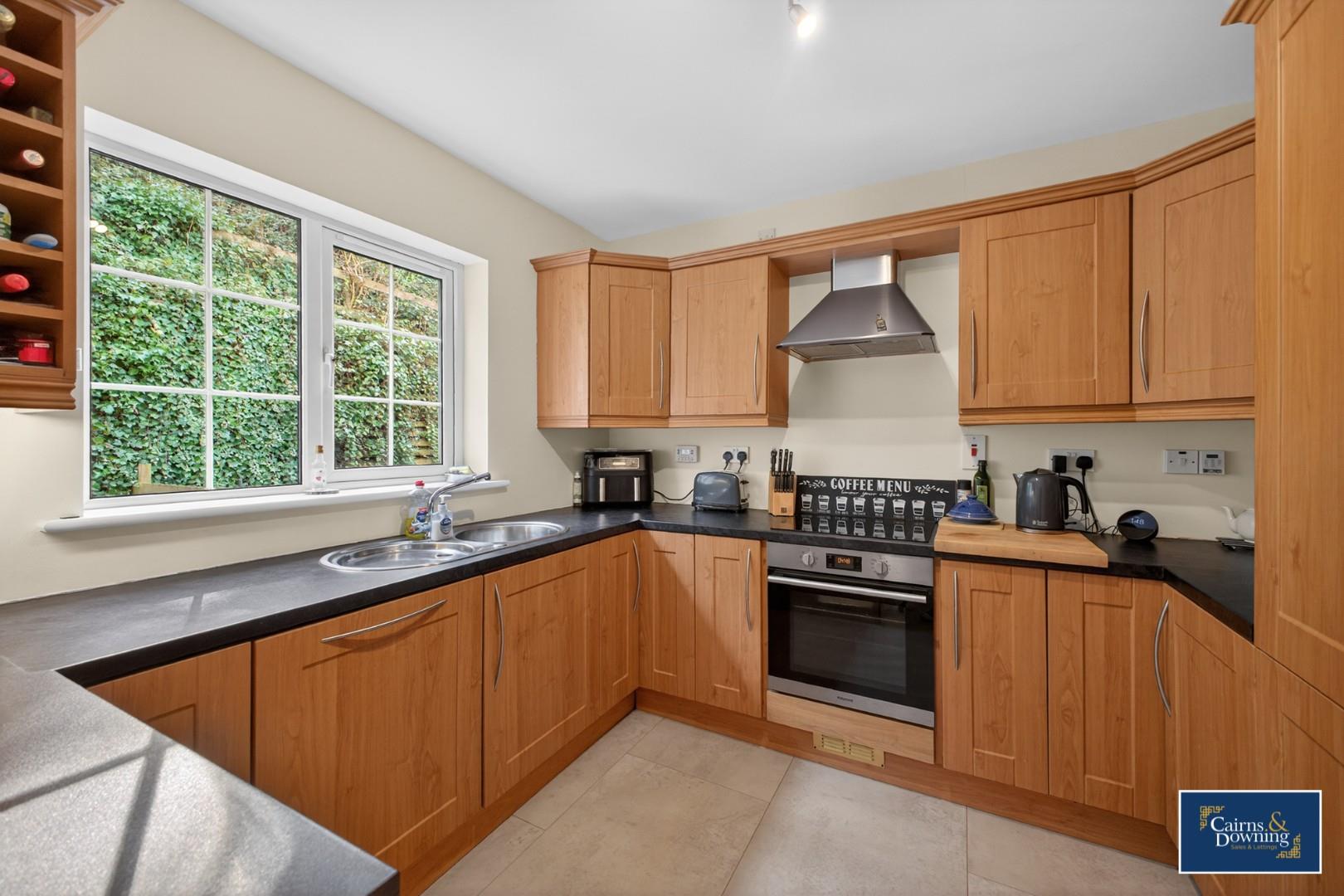 The kitchen is a great size and features a range of high & low level units. There is ample space for dining & the room is filled with natural light coming from the large windows and sliding door leading to the rear enclosed yard.