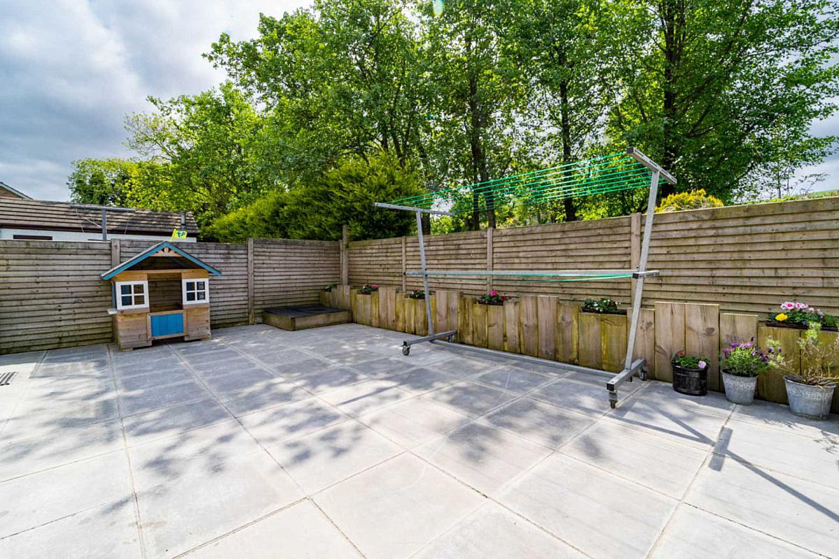 Fully enclosed paved area to rear. Timber fence to rear. Detached Garage (5.2 x 3.1) with roller door, PVC side door. Outside lighting. Lean-to storage to rear of garage.